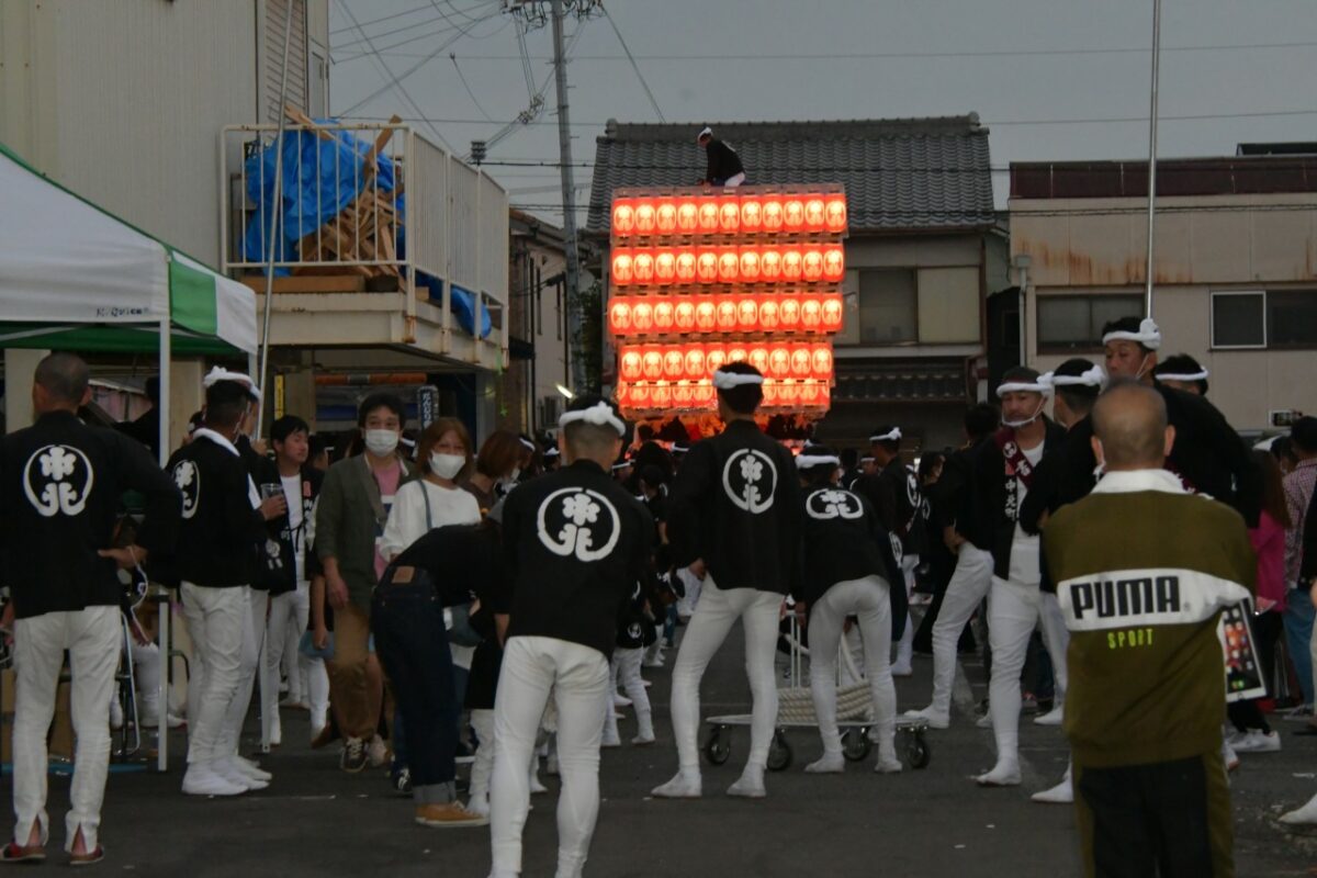 中北町はだんじりに提灯を付け、小屋横の駐車場停めていました。