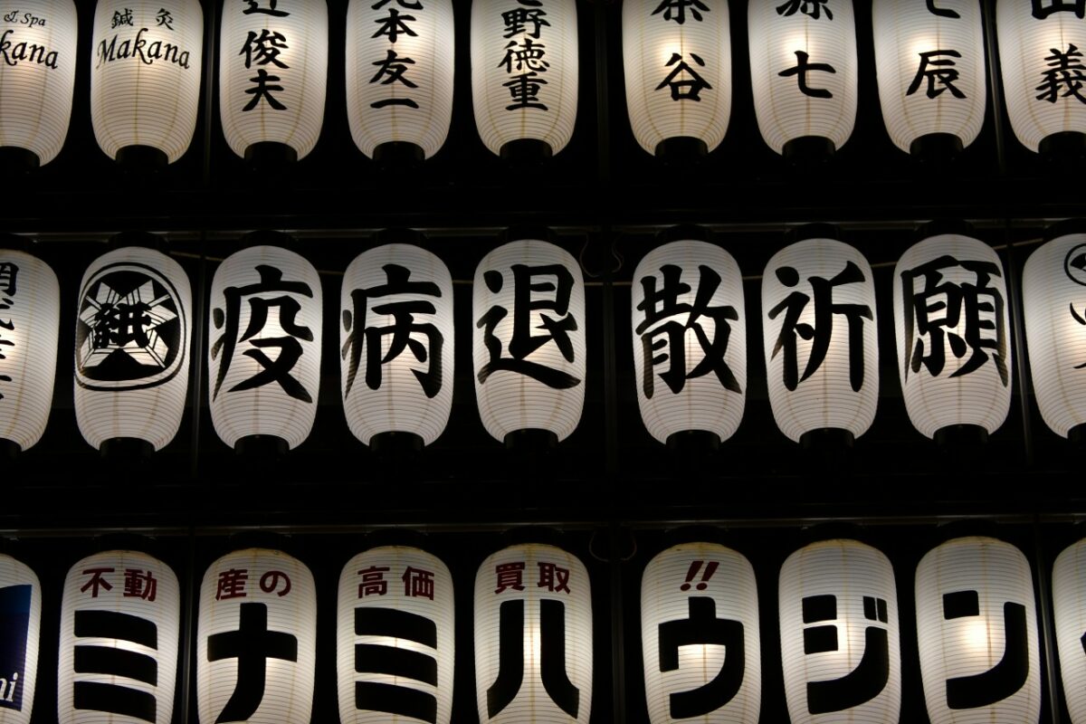 献灯台の中央には「疫病退散祈願」と書いた提灯が掲げられていました。