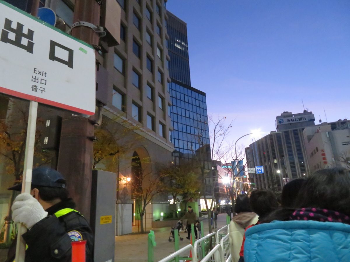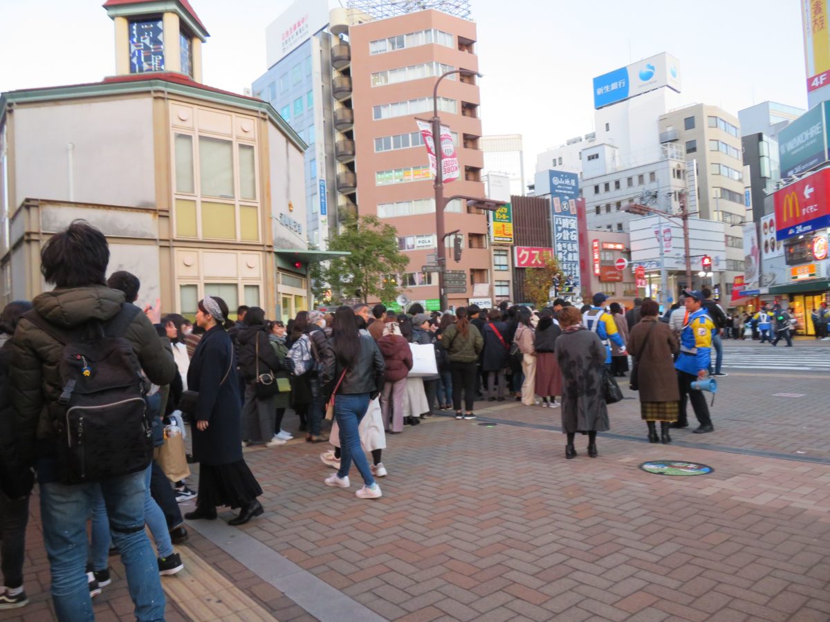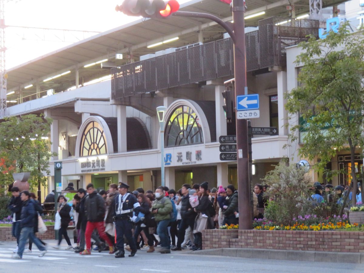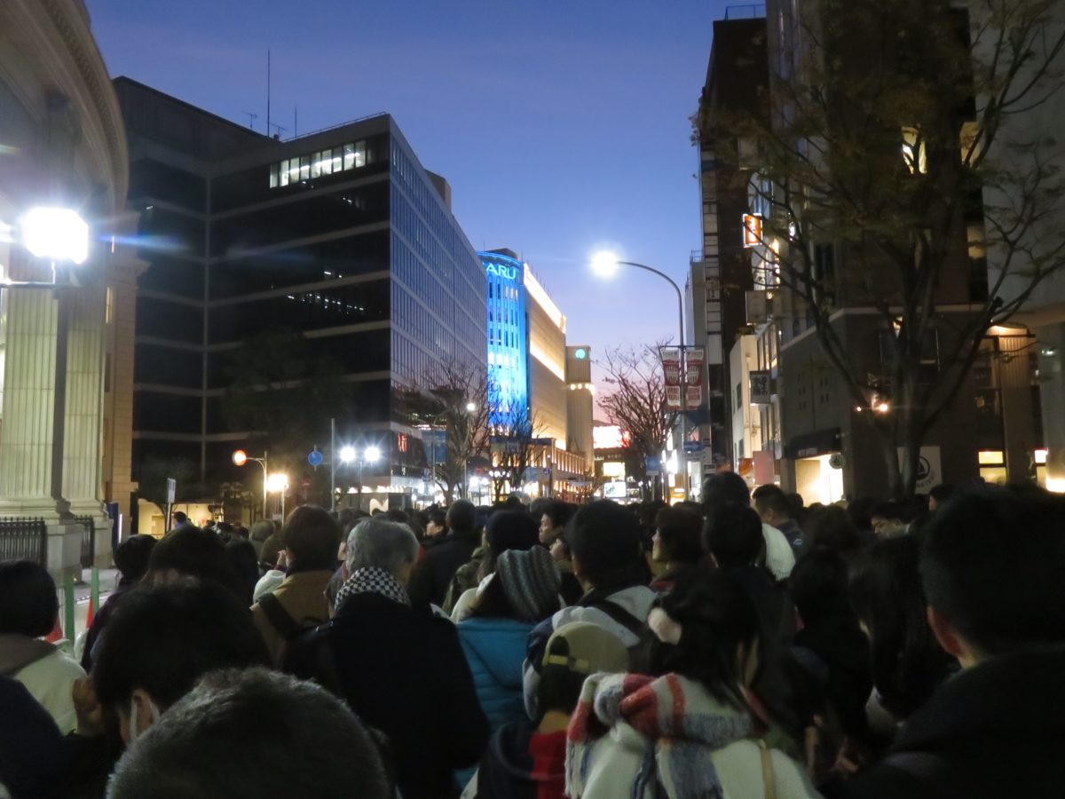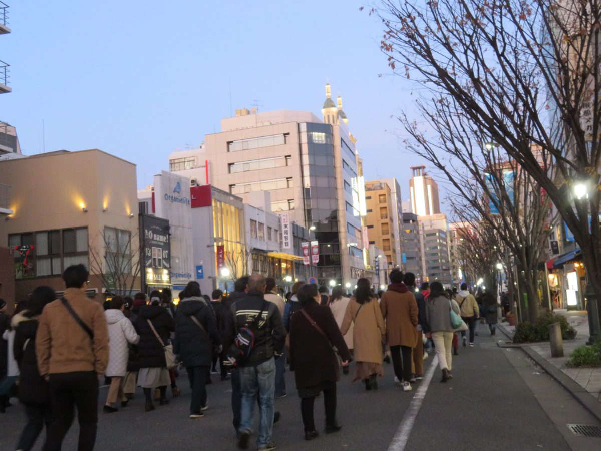 イルミネーション点灯の1時間前から長蛇の行列が続く元町駅前から仲町通り