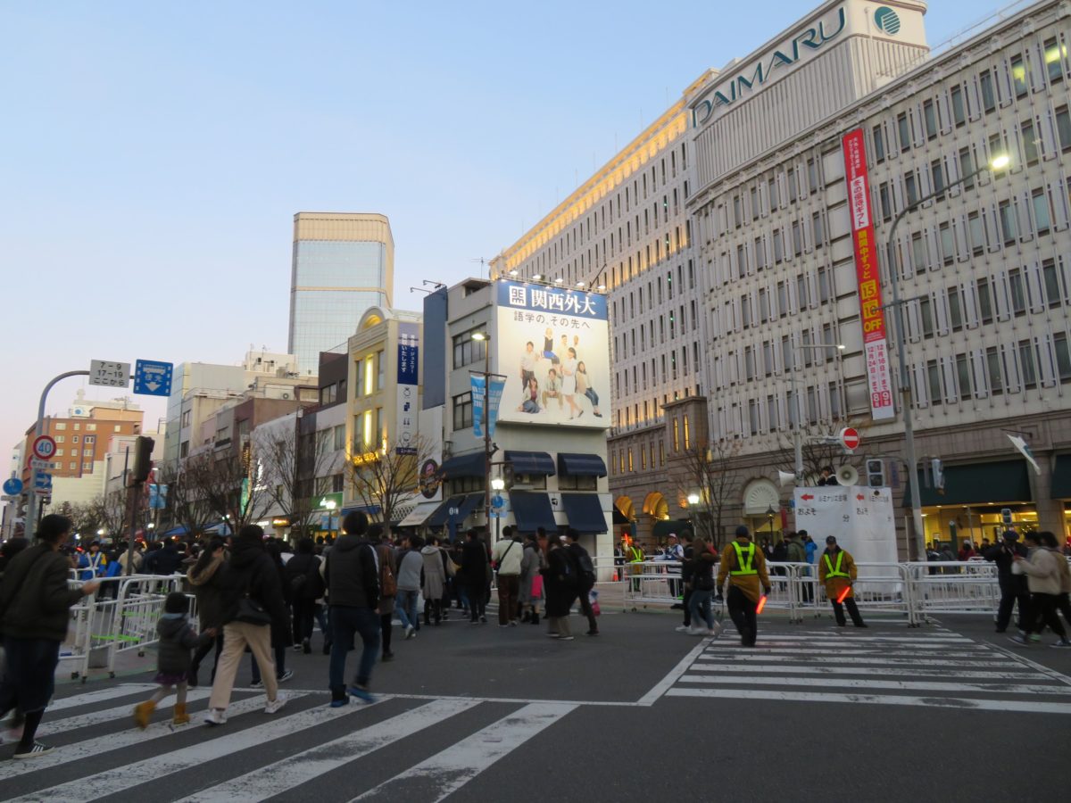 「神戸ルミナリエ」のメイン会場となるのは、仲町通りと東遊園地広場です。期間中は会場の最寄り駅となる元町駅、三宮駅周辺は広いエリアにわたって交通規制が行われます。会場に向かう場合のスタート地点は元町駅です。イルミネーション点灯の1時間前には元町から会場まで延々と行列が続きます。一度、人の波に入ると前後左右は人だらけとなり、前の人について歩くことしかできません。体調を崩した人が途中リタイアするための出口が数か所設けられています。