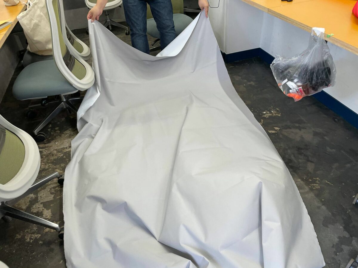 100×80cmぐらいの黒布を二つ折りして短辺に沿って両面テープで貼り込んでいく。