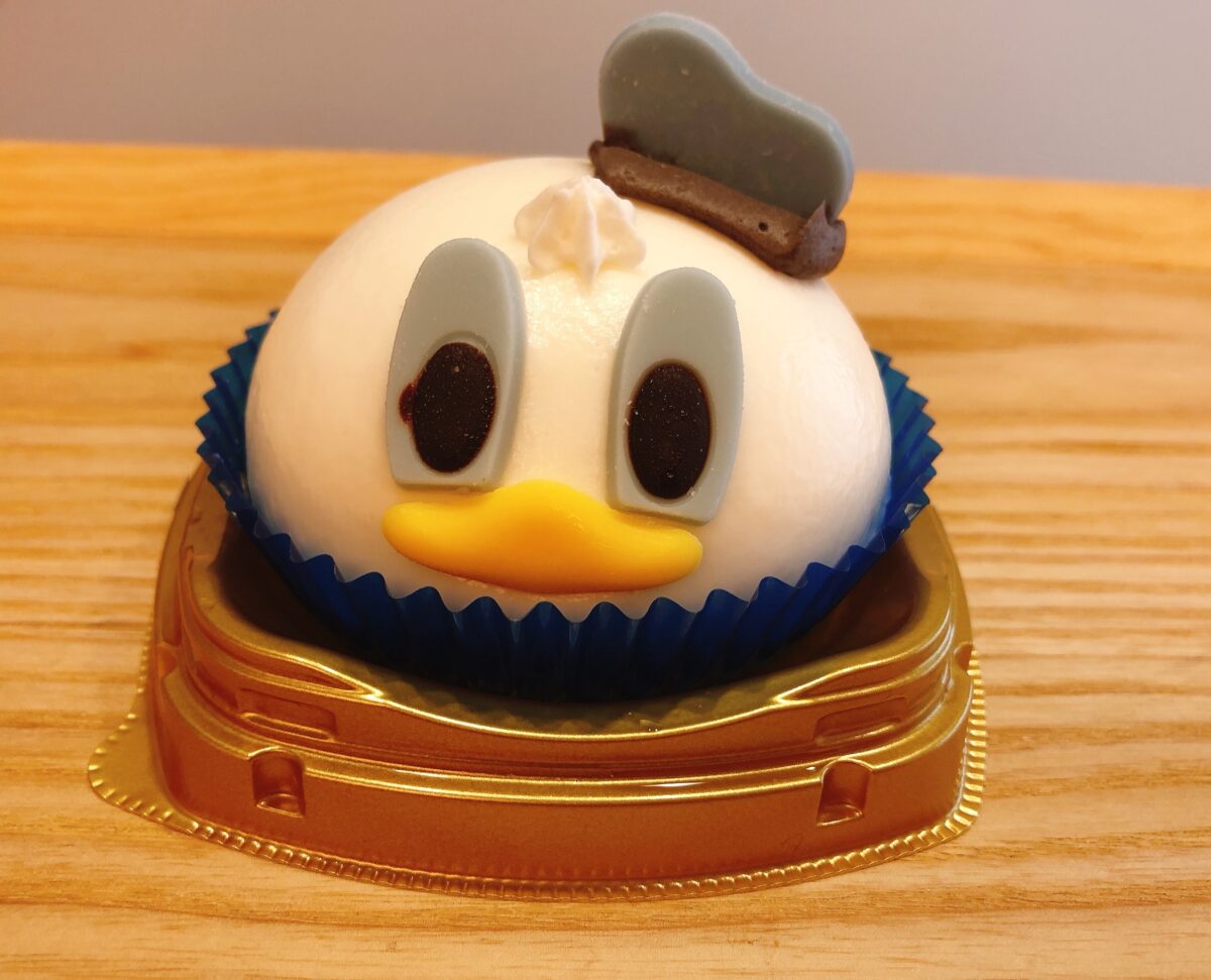 まずは「ドナルドダック バニラ&チョコ」をいただきます!目やくちばし、帽子などのパーツはホワイトチョコレートでできているのですが、生地にくっついてたからか、少し柔らかくなっていてケーキとよく馴染んでいました。そして一番の特徴は、スポンジ部分は底に数ミリ敷いてある程度で、ケーキのほとんどがムース状のふわふわボディという点。