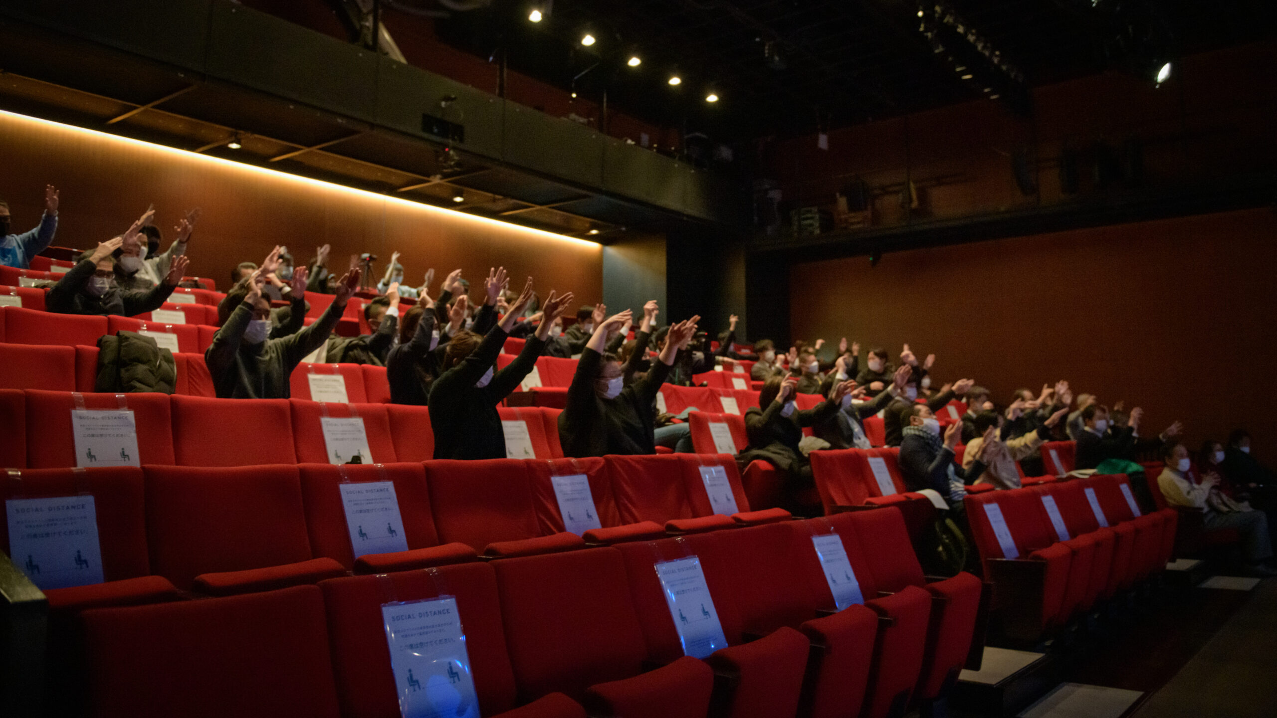 東京・高円寺の夏の風物詩「東京高円寺阿波おどり」とデジタル技術を融合させた舞台公演「光も踊る 東京高円寺阿波おどりplus+」の関係者向けに実施したモニター公演が、2021年2月19日、杉並区の劇場「座・高円寺」で行われた。