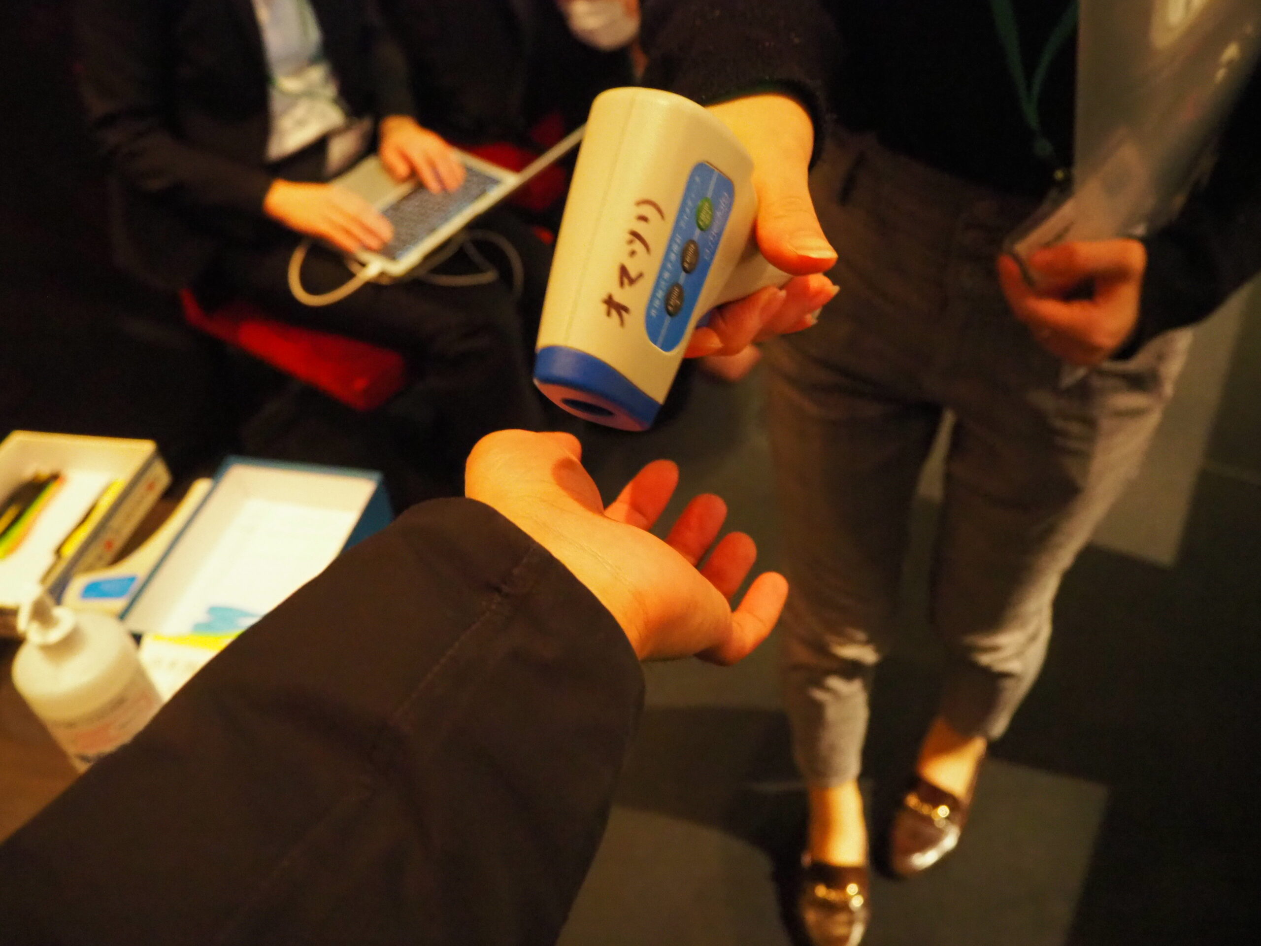 鳴り物の音に合わせてプログラミングされた光が投影され、踊り手たちはその光の中で踊る。また、東京高円寺阿波おどりの歴史や、衣装、鳴り物の説明もある。感染防止のため立って行えないのは残念だが、手だけを使った踊りの体験も行われた。