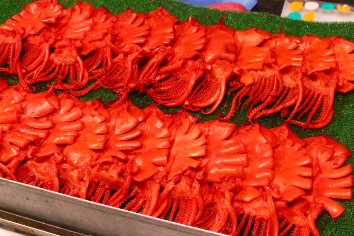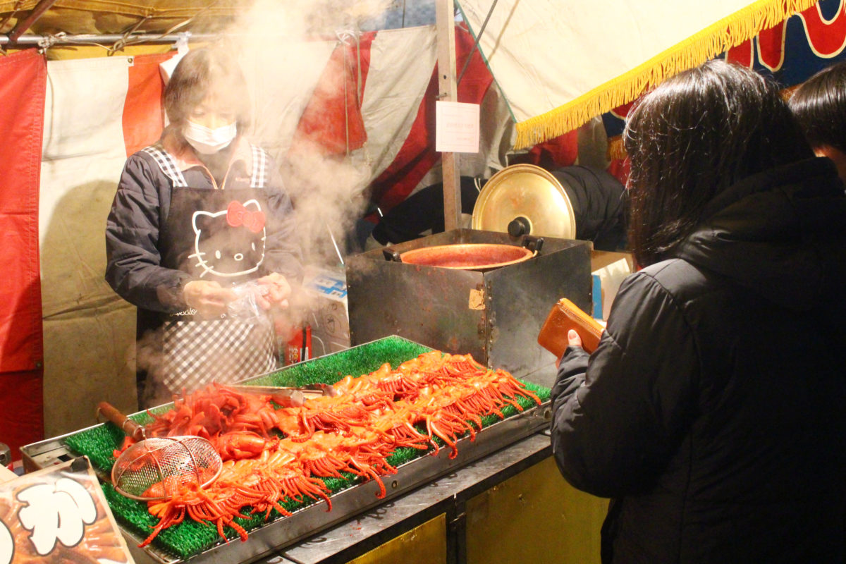 そして古河の出店の特徴と言いますか、目についたのがこちら「煮イカ」です!出店数軒ごとに必ずいる真っ赤なイカ!内陸で海産物が貴重だったこと、水運が発達していたことからイカが根付いたのでしょうか…?