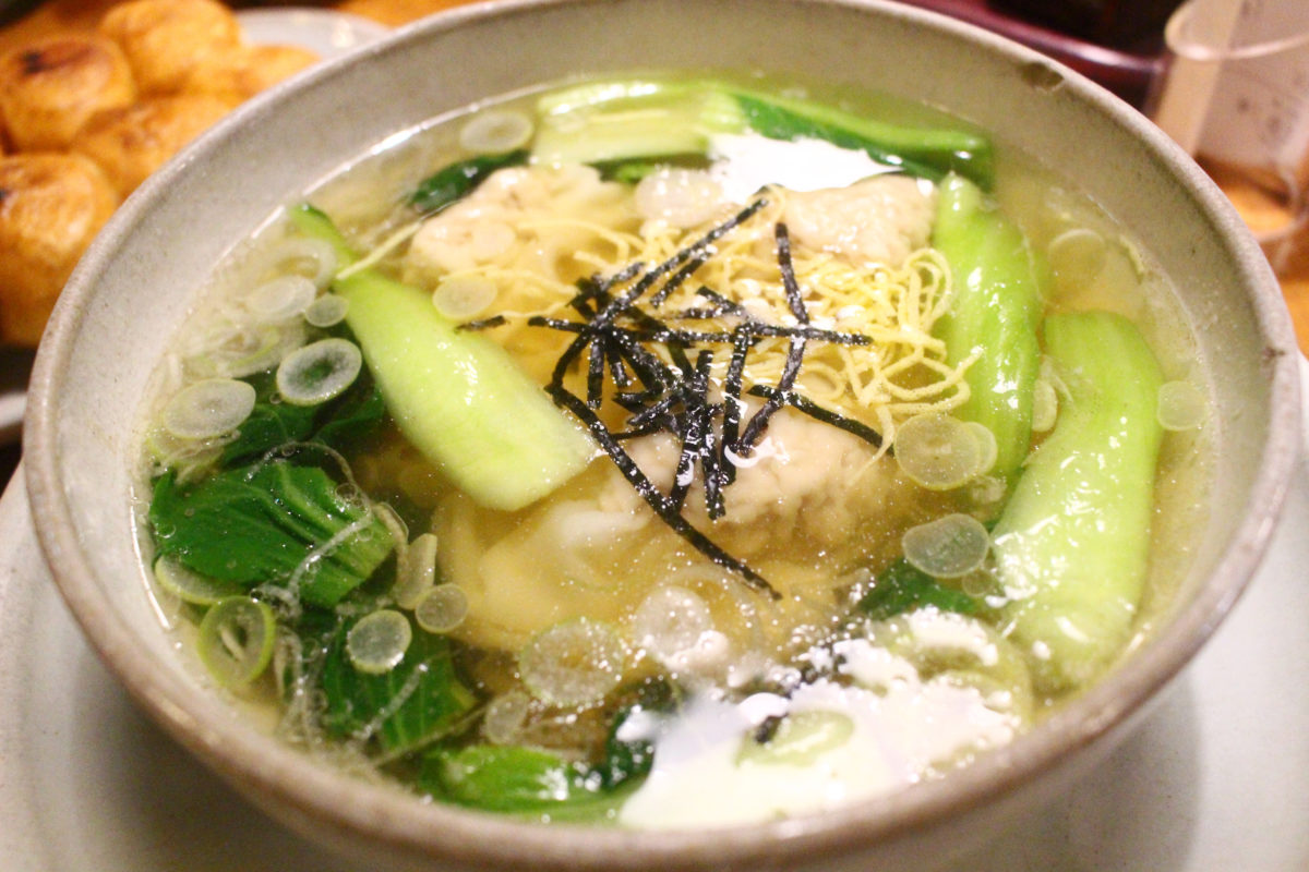 餃子がおいしかったので、ほんとんと呼ばれるワンタンも頼んでしまいました…。鶏がらスープに挽肉がぎゅっと詰まったワンタンは美味です。お祭りの時期は寒いことが多いので、こちらで食べて一休憩するのも良いかもしれません。