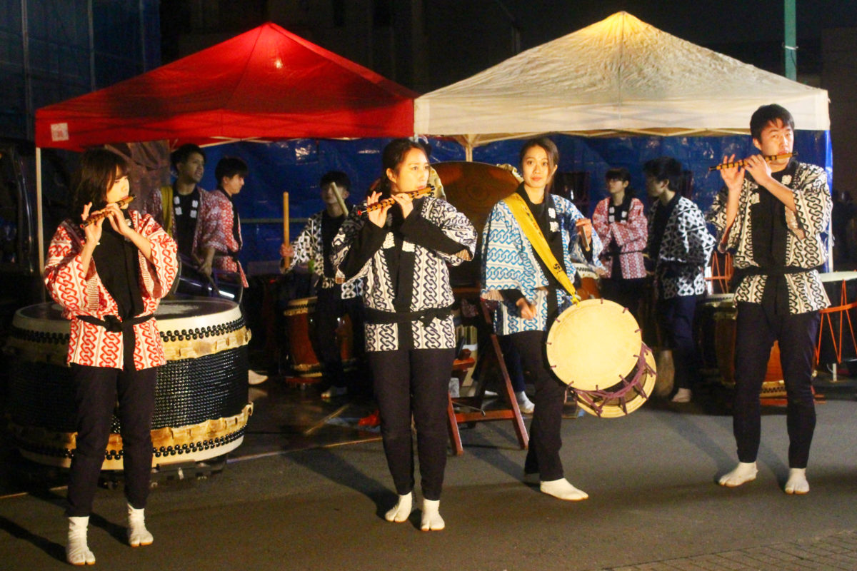 出店の周りではパフォーマンスも行われます。地元グループによる太鼓の披露がありました!