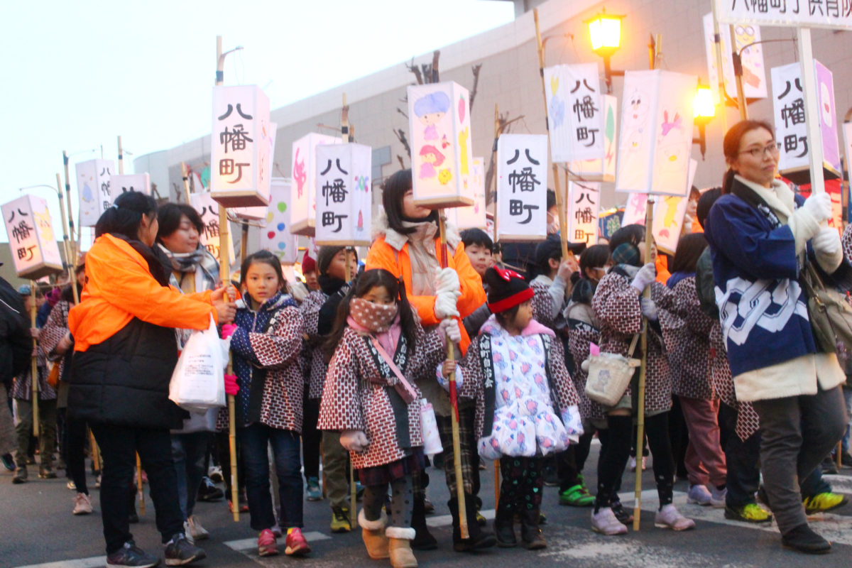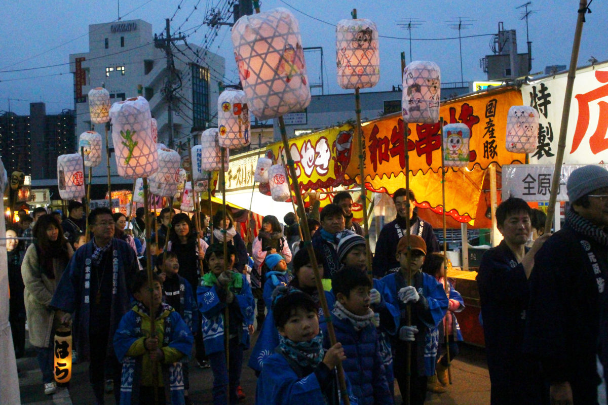 令和初の古河提灯竿もみまつりが行われたのは12月7日。日も傾いてきた16時15分にお祭りの開始を告げる子どもパレードがスタートしました!子どもたちが町ごとにつくられた提灯を持って、古河の街を練り歩きます。