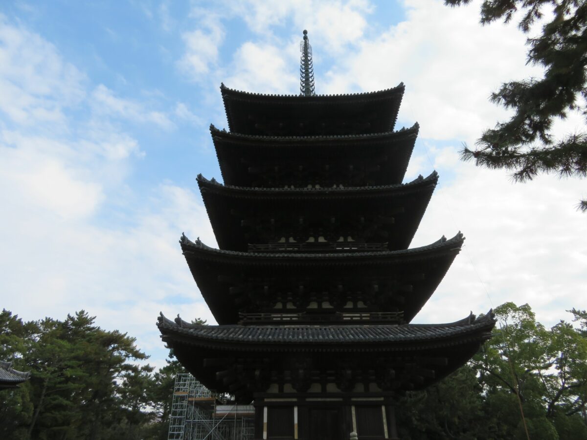 東金堂の南に並び建つのが五重塔です。730年に藤原不比等の娘、光明皇后の発願で建立されました。その後、焼失、再建を繰り返し、1426年頃に再建された塔が現在に残っています。古都奈良を象徴する建物となっており、五重塔としては国内で京都の東寺に次いで2番目に高い塔です。