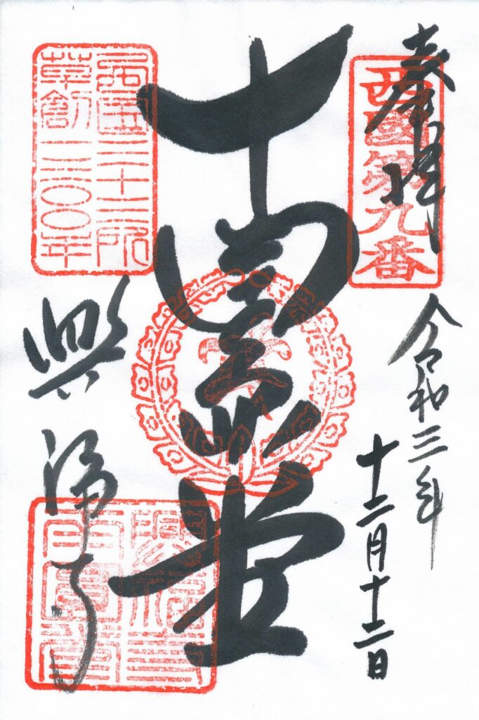 奈良市に堂宇を構える南都七大寺の一つ、興福寺の御朱印は種類豊富です。境内中央の中金堂と東金堂に挟まれる勧進所では、「令興福力」、「千手観音」の文字が記された御朱印を頂くことができます。いずれの文字も太い線で流れるように書かれ、エネルギーを頂くことができそうです。南円堂の御朱印には西国第九番の朱印が押されます。他にも藤原鎌足のご詠歌「頼もしく あゆみをはこべ ひとことの ねがひもすてぬ ちかい今せば」が、和かな書体で詠みこまれる御朱印も準備されています。