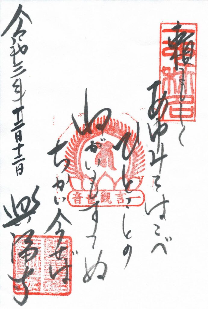 藤原鎌足のご詠歌が記される興福寺の御朱印