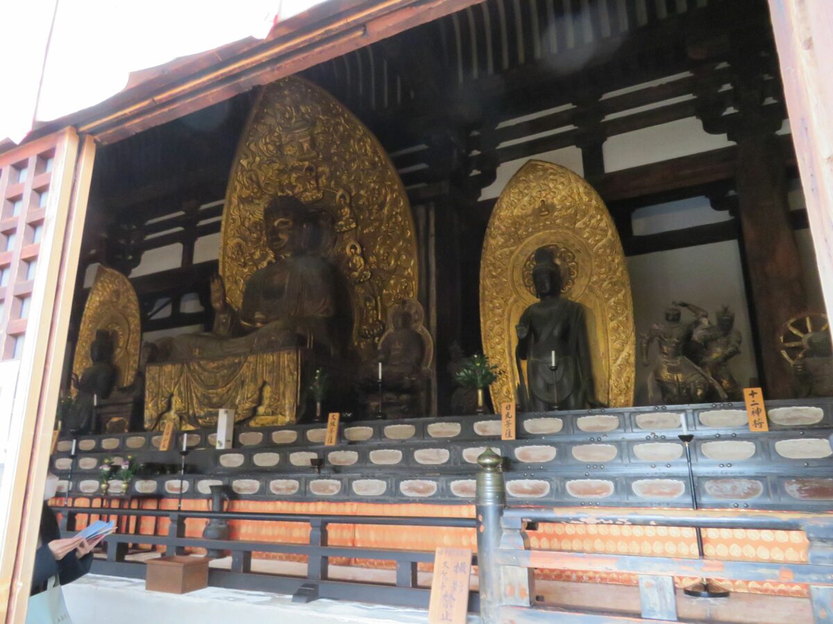 中金堂の東側には聖武天皇が、726年に東金堂が建立しました。創建以来5度も被災し室町時代の1415年に、前面を吹き放しとした寄棟造りで再建されています。創建当初の奈良時代の雰囲気を色濃く残す堂内には、本尊薬師如来坐像を中心に、日光・月光菩薩立像、文殊菩薩坐像、維摩居士坐像、十二神将立像、四天王立像などが安置されています。