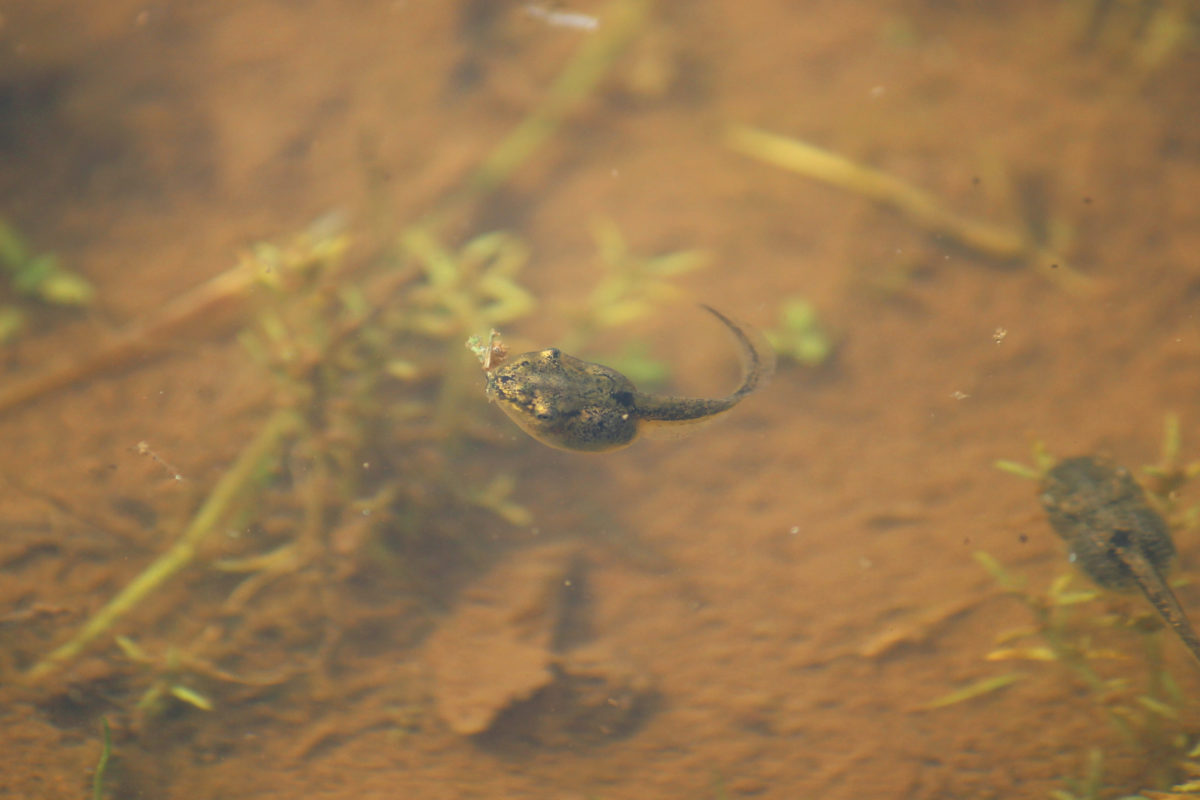 また菖蒲が生えている水の中も注目ポイント!こちらのオタマジャクシのように、生き物が発見できることもあるので、見てみてください!