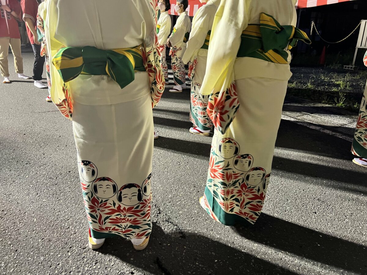 こ、これは「鳴子踊り」のために集まった地元と姉妹都市の婦人会のみなさん。べ、別にこけしをあしらった浴衣にか、感心なんかしてないんだからね! か、勘違いしないでよね!
