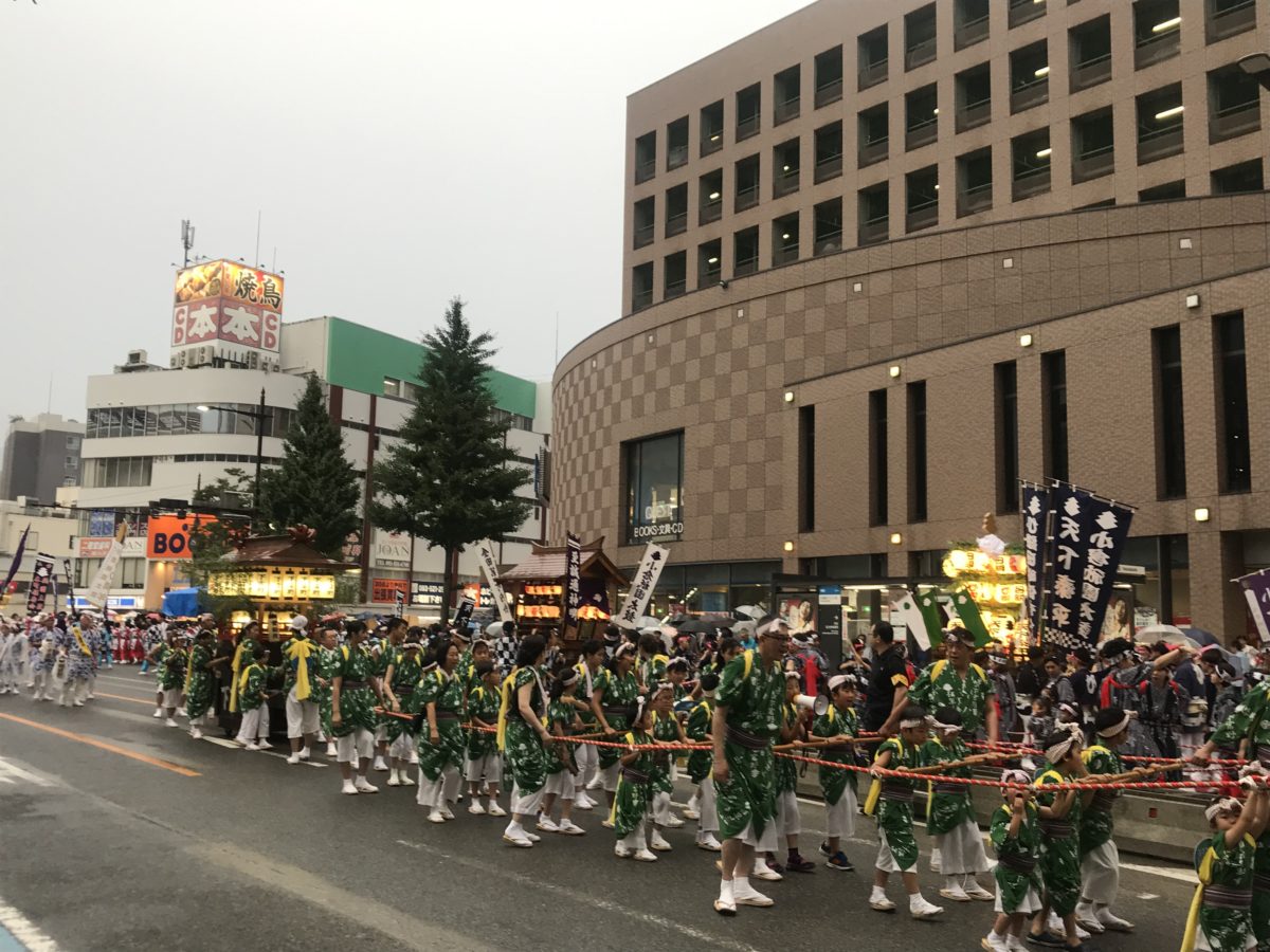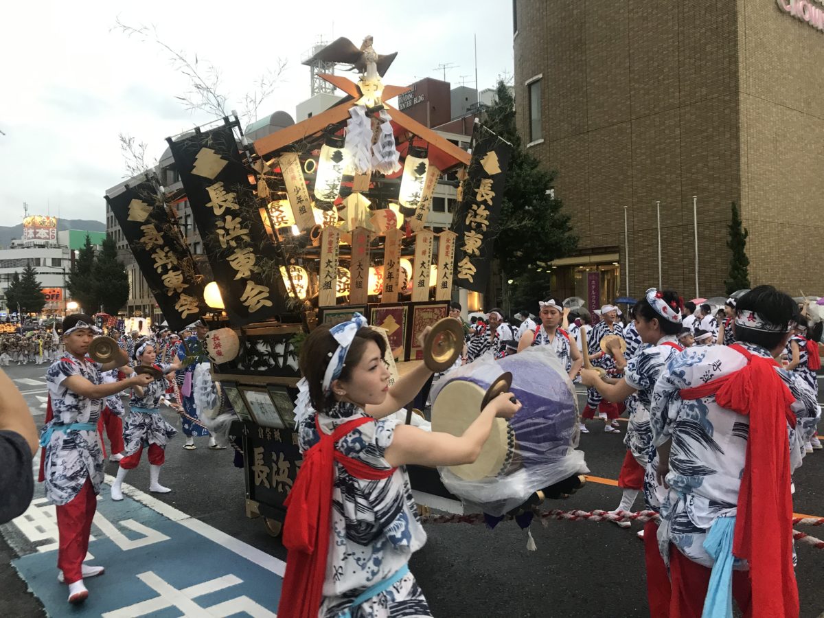 コンサートホールやステージで聞く太鼓とはまた違う、街に溶け込む音がなんとも心地いい。太鼓好きなら一度は見て、聞いて、街と溶け込むこの響きを体験しておくべき!圧巻です!大通りは駅方向へのびているので、駅の方へ歩いていきながら山車の巡回を見られます。まだまだ聞いていたい気持ちをなんとか抑えて駅のコインロッカーへ。荷物を取り出し浴衣を着替え、リムジンバスで空港へ。飛行機の中でも鳴りやまない太鼓の響きは、明日からの元気を奮い立たせているようでした。(とりあえず、機内では爆睡しました)