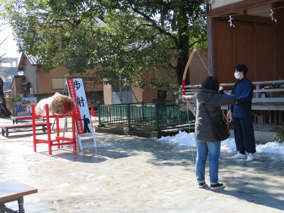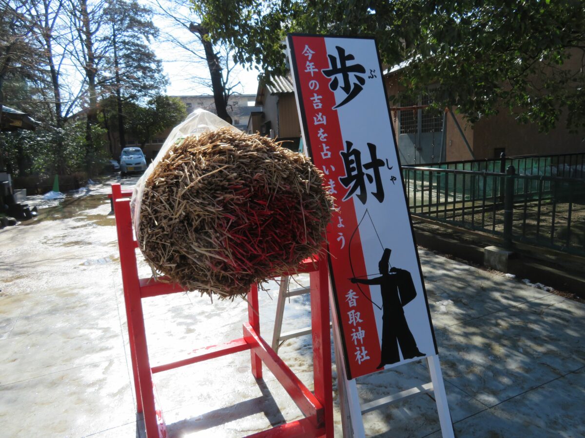 全国各地の社寺では弓矢を用いた神事が盛んに行われています。埼玉県越谷市に社殿を構える香取神社では、例年2月11日に「祈年祭御備社(きねんさい おびしゃ)」が行われています。