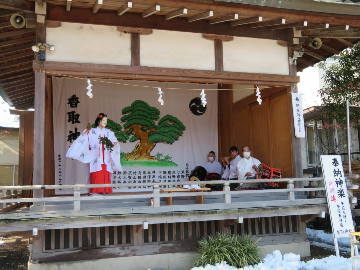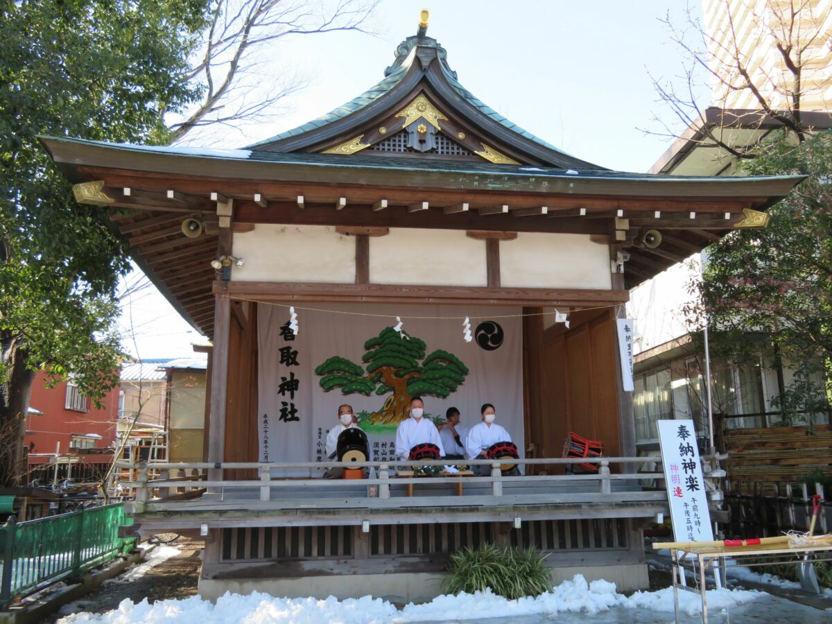 埼玉県越谷市の香取神社では、例年2月11日に「祈年祭御備社」が開催されています。一年の五穀豊穣と家内繁栄を祈念しながら、弓矢で的を射るのです。的射場の西に建立される神楽殿では、神楽や伝統芸能の奉納が行われます。
