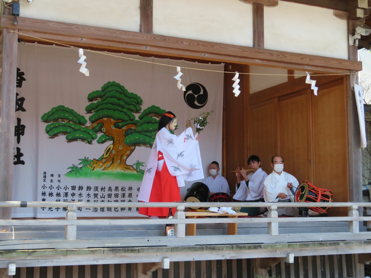 的射場の西の神楽殿では、神楽や伝統芸能の奉納が行われます。