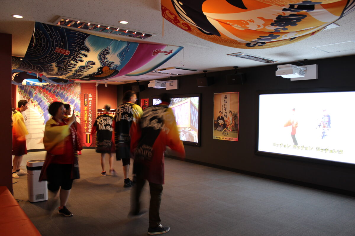 交流館では、よさこい祭の歴史や見どころ、大型スクリーンによる臨場感あるビジュアルコーナーや衣装の試着など体験コーナーも充実。はじめてよさこい祭を訪れる方は、ぜひ一度お立ち寄りください。