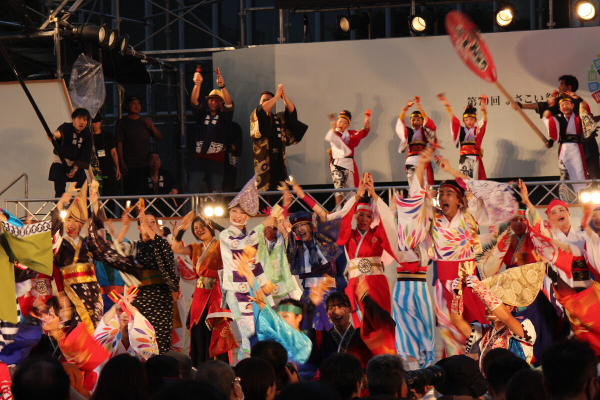 近年では、参加チームは200チームを超え、踊り子は2万人に上ります。全国から集まる競合よさこいチームの演舞を見ようと集まる観客は100万人以上になります。