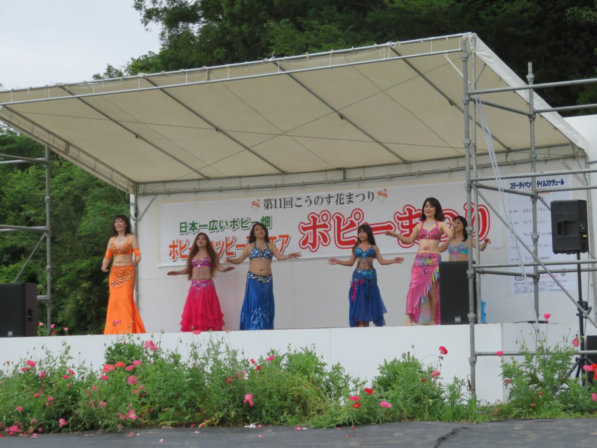 ポピー・ハッピースクエアの中央の広場には露店が取り囲み、特設ステージではベリーダンスなどの多彩なイベントが行われます。