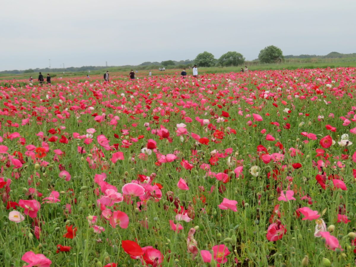 「川幅日本一」のポピー・ハッピースクエアを彩る3000万前後のポピー