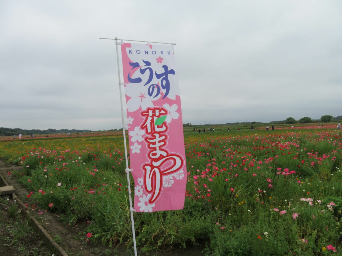 ポピー・ハッピースクエアに立つ「こうのす花まつり」の幟