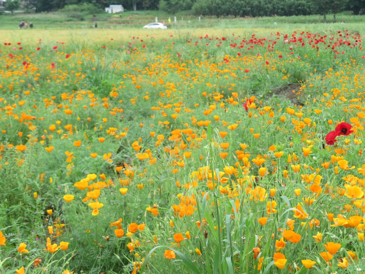 ポピー・ハッピースクエアの中央から西に広がるポピー畑