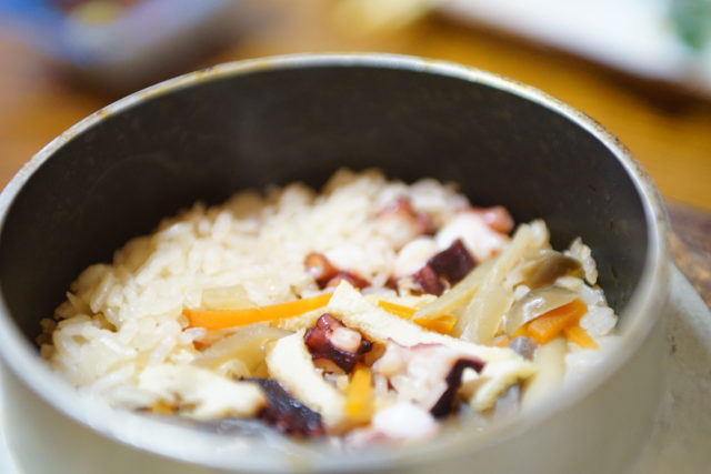 タコの釜めしにタコしゃぶ、タコの天ぷら、タコの刺身(3種盛り)など、