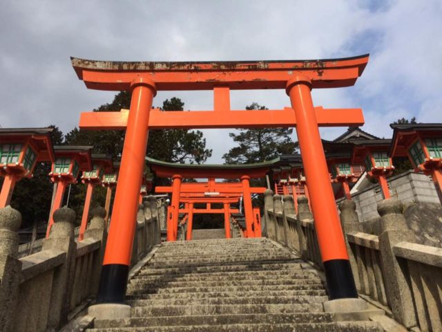 (久井はだか祭りが行われる久井稲生神社の境内へと連なる鳥居。祭り本番の夜には両側の灯篭に火が灯され、インスタジェニックな光景となる)