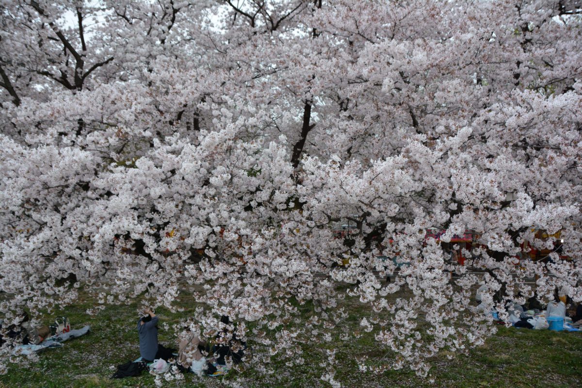 桜の木の下は約2キロの宴会場
