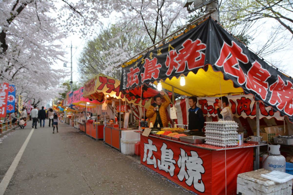 「熊谷さくら祭」の期間中、熊谷桜堤の土手下の側道には、隙間なく露店が並びます。花見のときに欲しくなる飲食品が全て勢揃いしています。桜の木の下にシートを敷いて春風に吹かれながら飲食を楽しむことができます。何しろ約2キロの桜並木が続くので、必ず場所を確保することはできるでしょう。