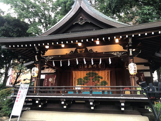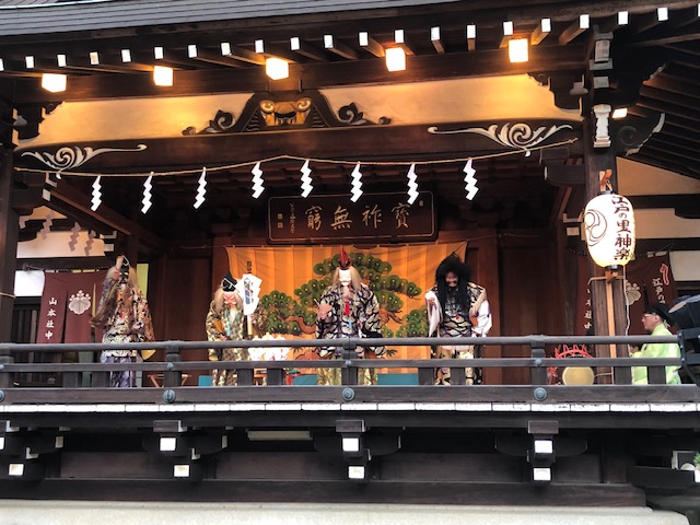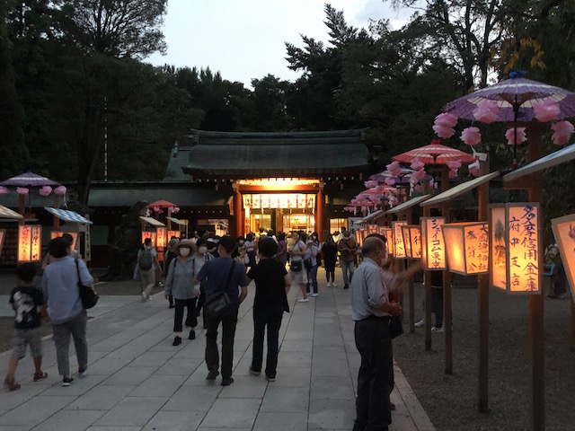 踊りは約40分ほど。気が付くとあたりはすっかり暗くなっていて、境内の行灯もともり、神秘的な雰囲気に神社の表情がかわっていました。