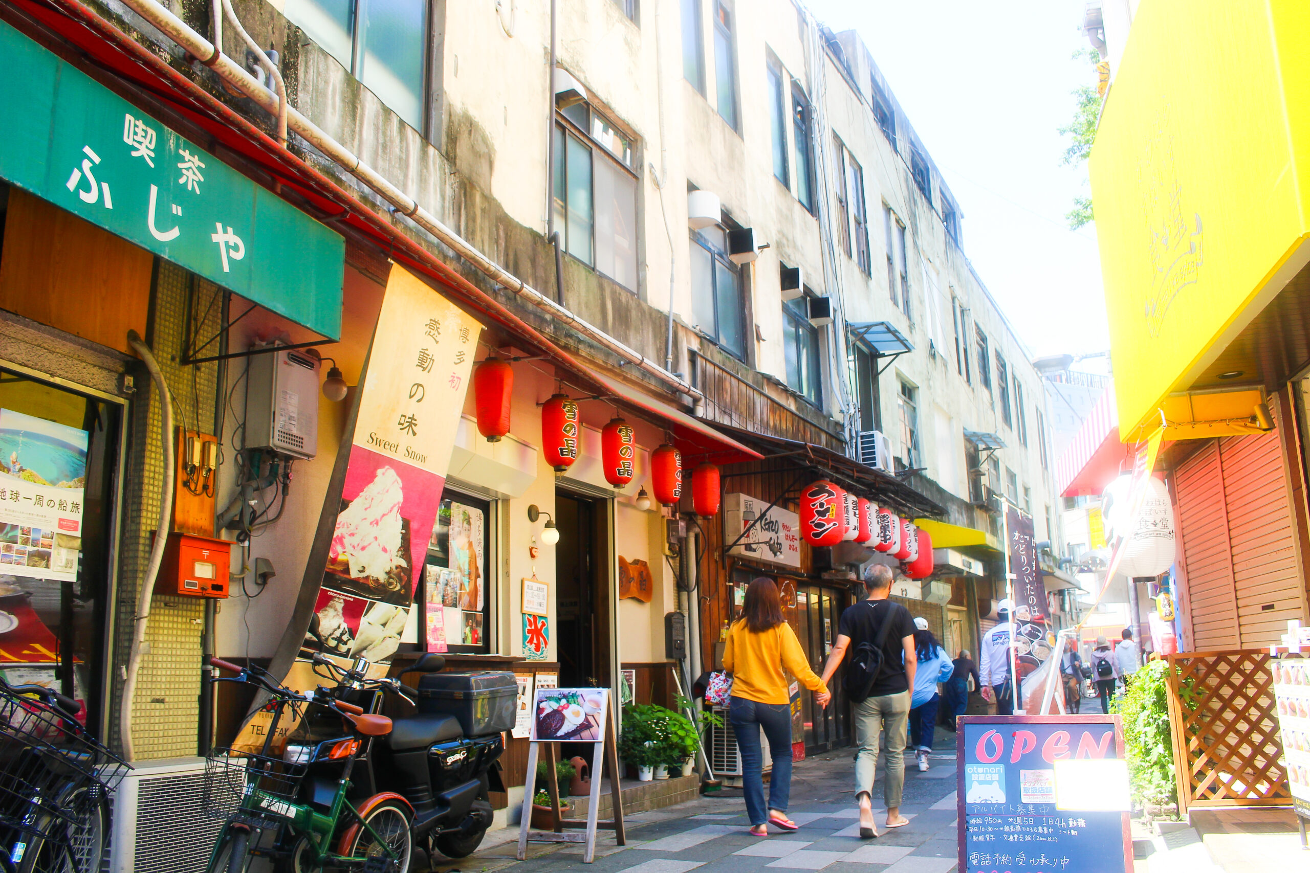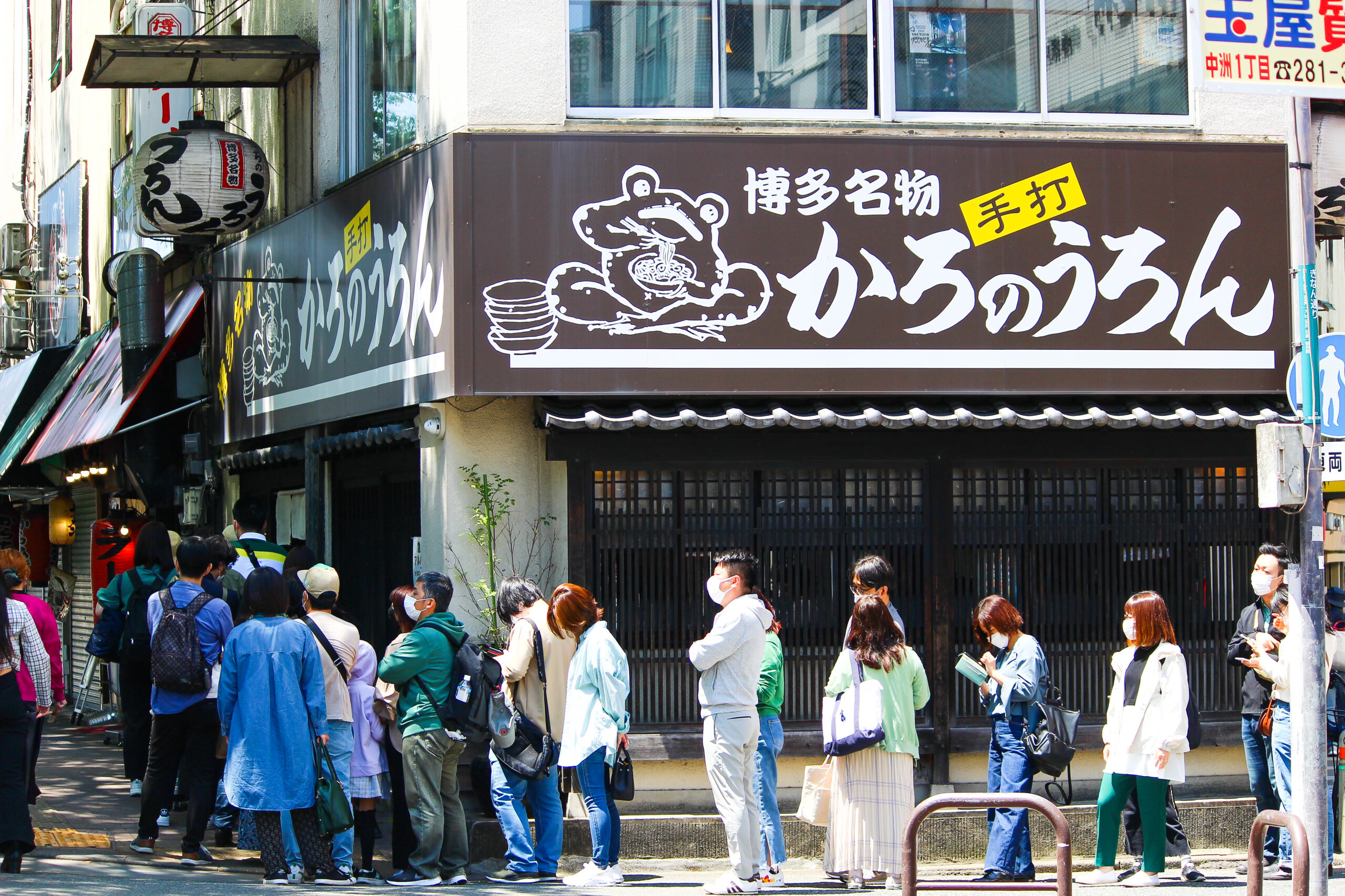 また商店街の入り口から反対へ進むと、このような飲食店街もあります。その端には博多名物のうどん屋「かろのうろん」もありますので、ぜひチェックしてみてください!