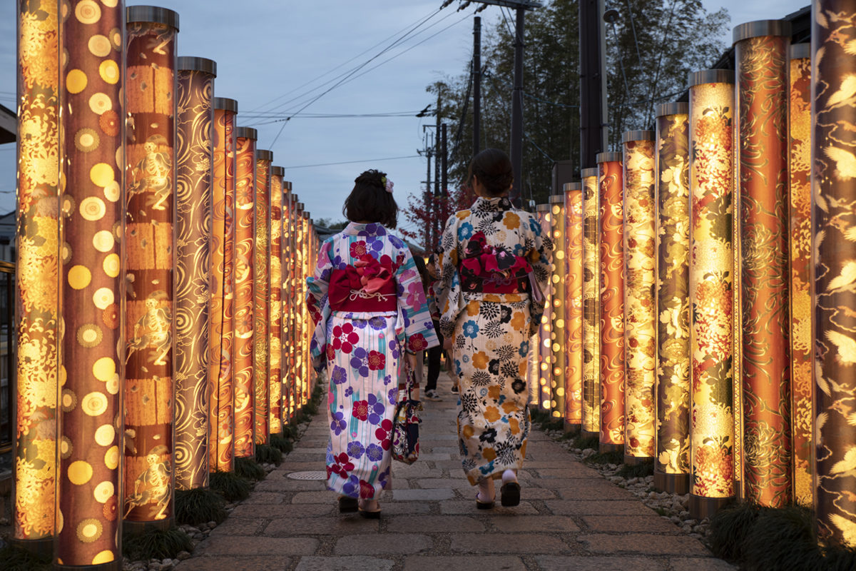 着物を着て撮影すると昼でも夜でも映えた写真が撮れるフォトスポットです。