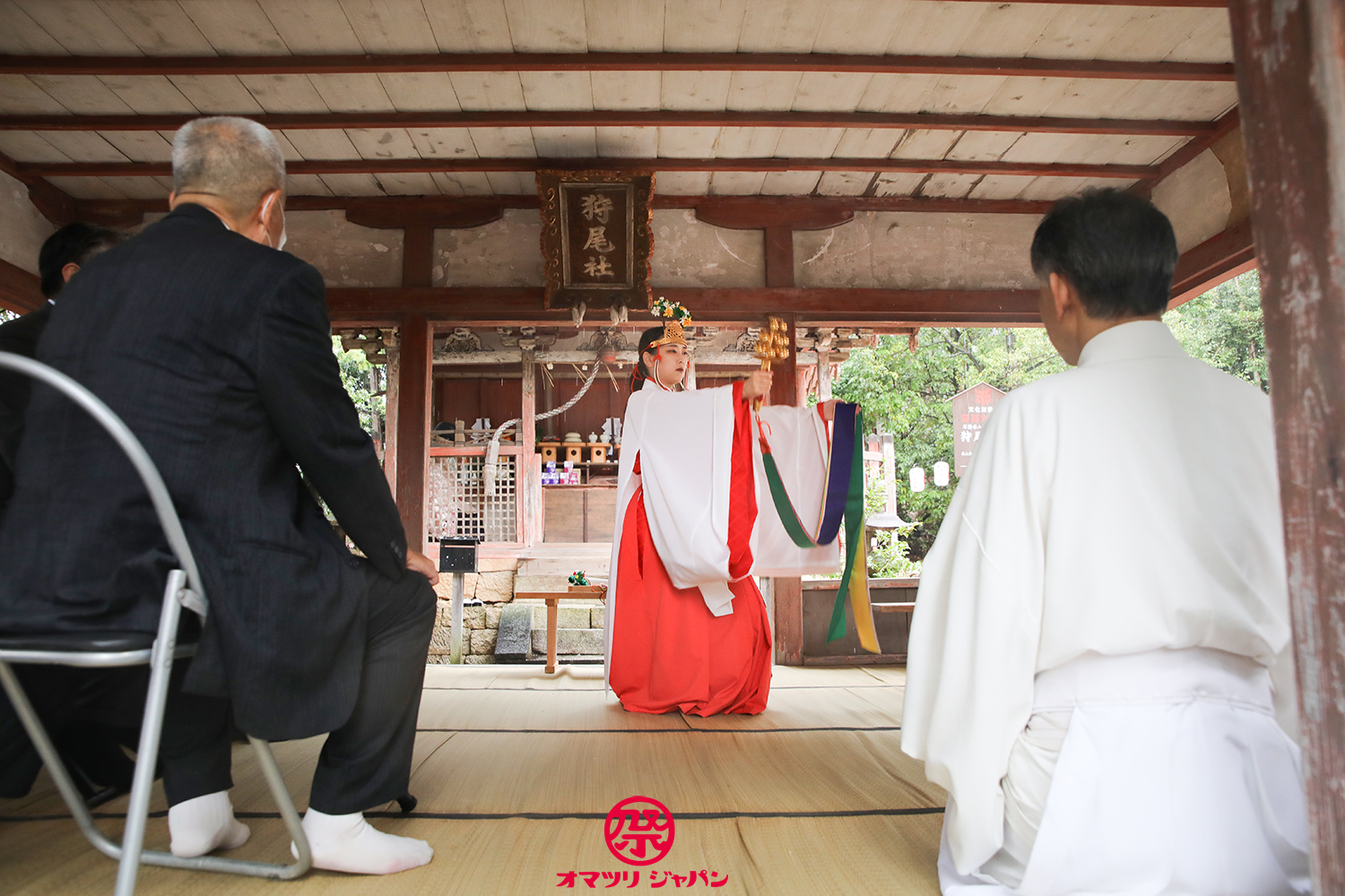 10時になり、いよいよお祭りの開始。祝詞奏上のあと、浦安の舞が奉納されました。