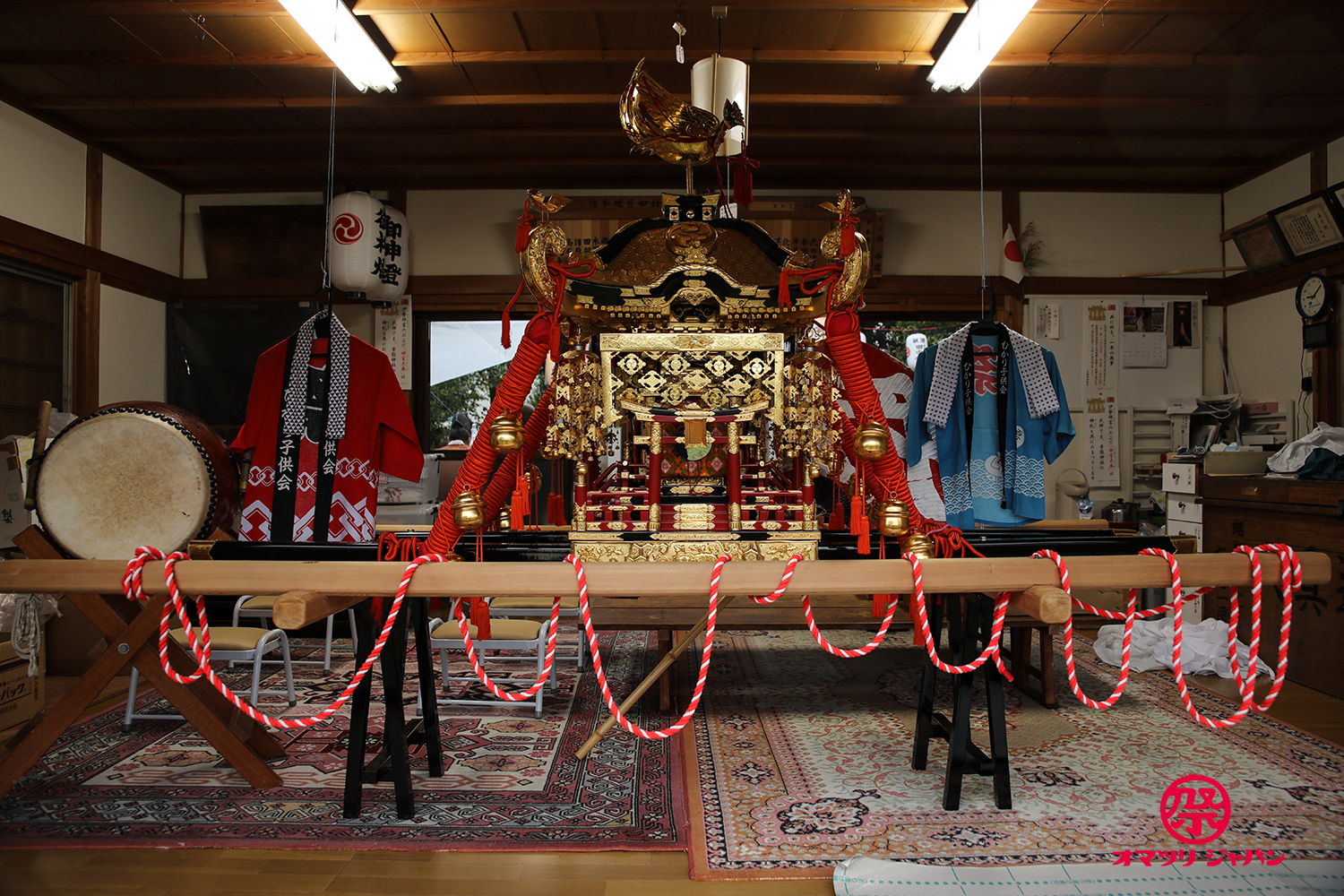 部屋の中にはお神輿が鎮座。来年はまた地域の人がこのお神輿を担げますように…。