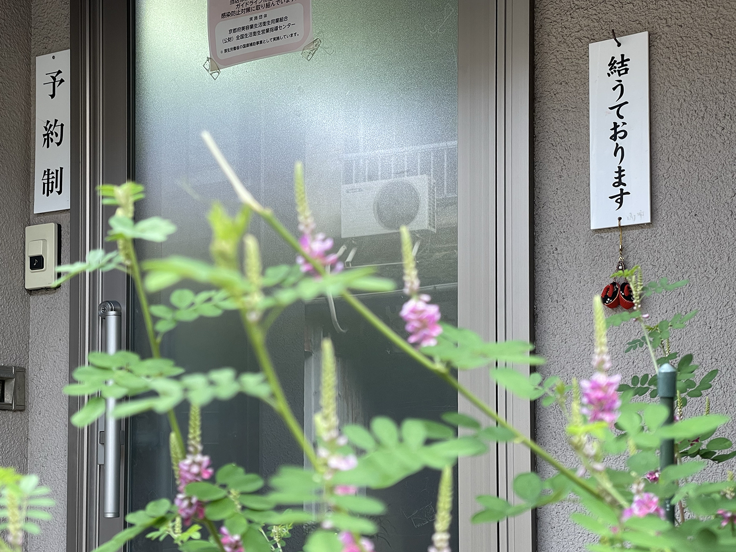 山中美容室の入口「結うております」の看板はTVで活躍を見たファンからの贈り物