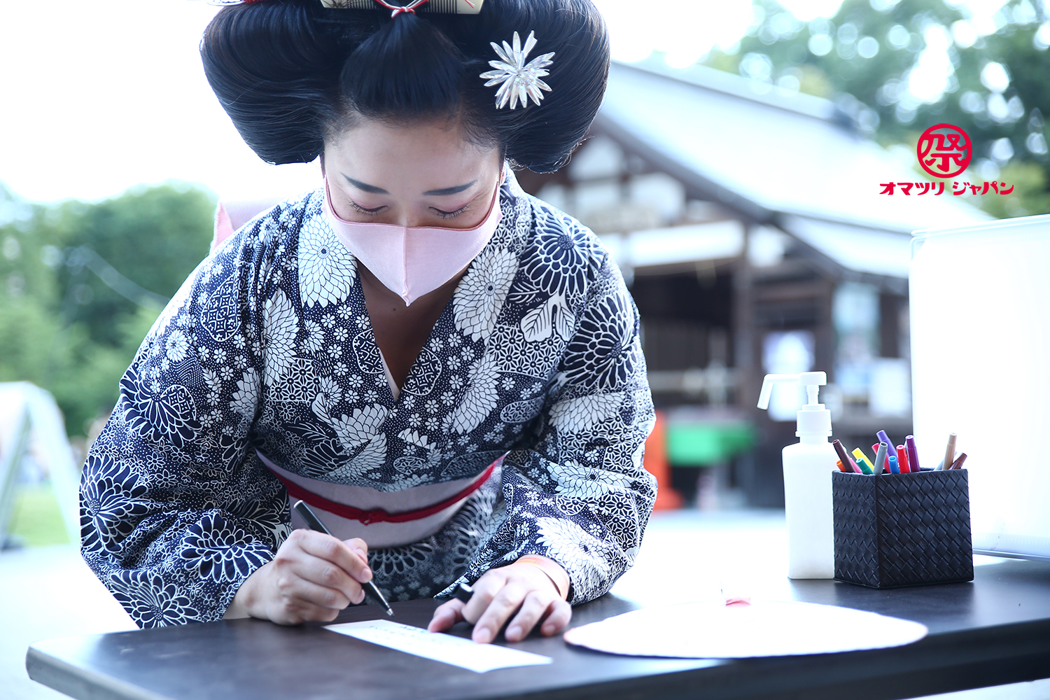 境内には舞台の他に、うちわを色を塗ったり、運勢が浮かび上がる水占いなどのイベントも用意されています。