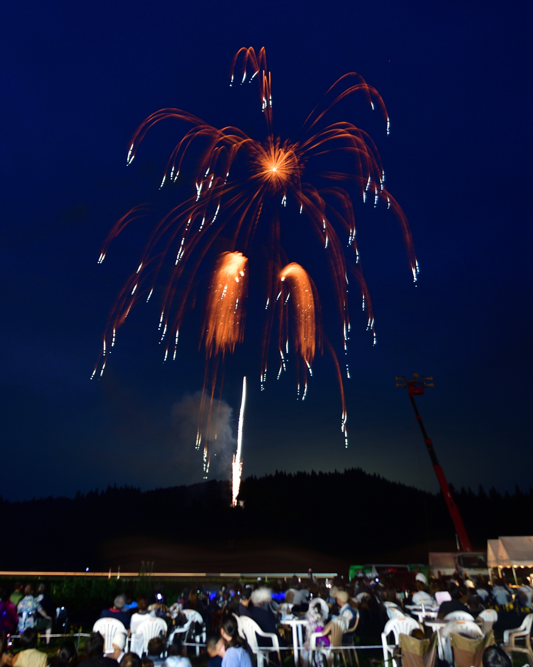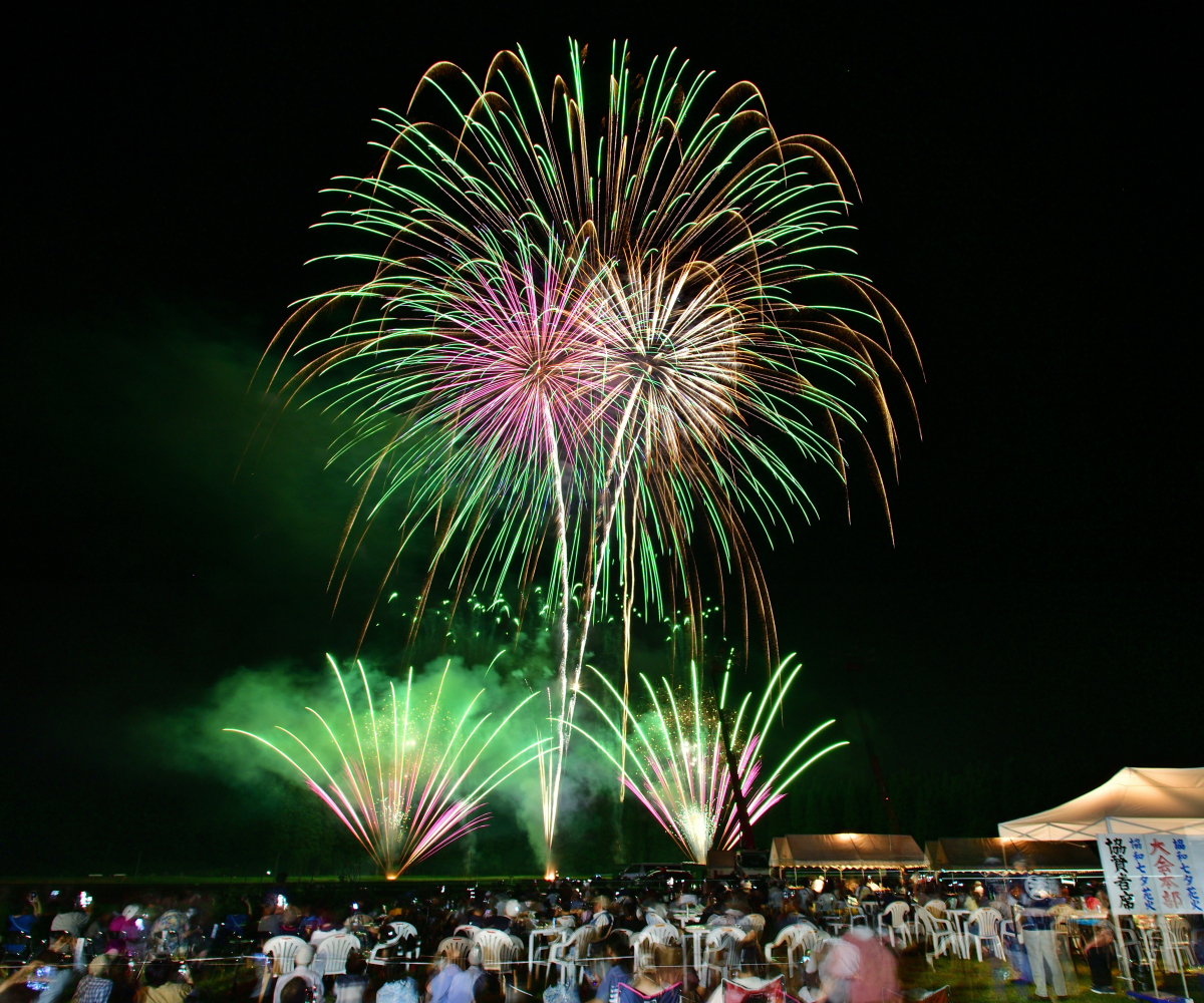 40数年前、秋田県の伝統行事『梵天』をこの時期に始めたのですが、小さなものではなく夏祭りとして何か出来ないかと、有志で花火を上げたのが始まりです。この地域は花火の打ち上げ従事者が多かったのです。その後、回を重ねるたびに花火の数を増やし、大きくしていきました。