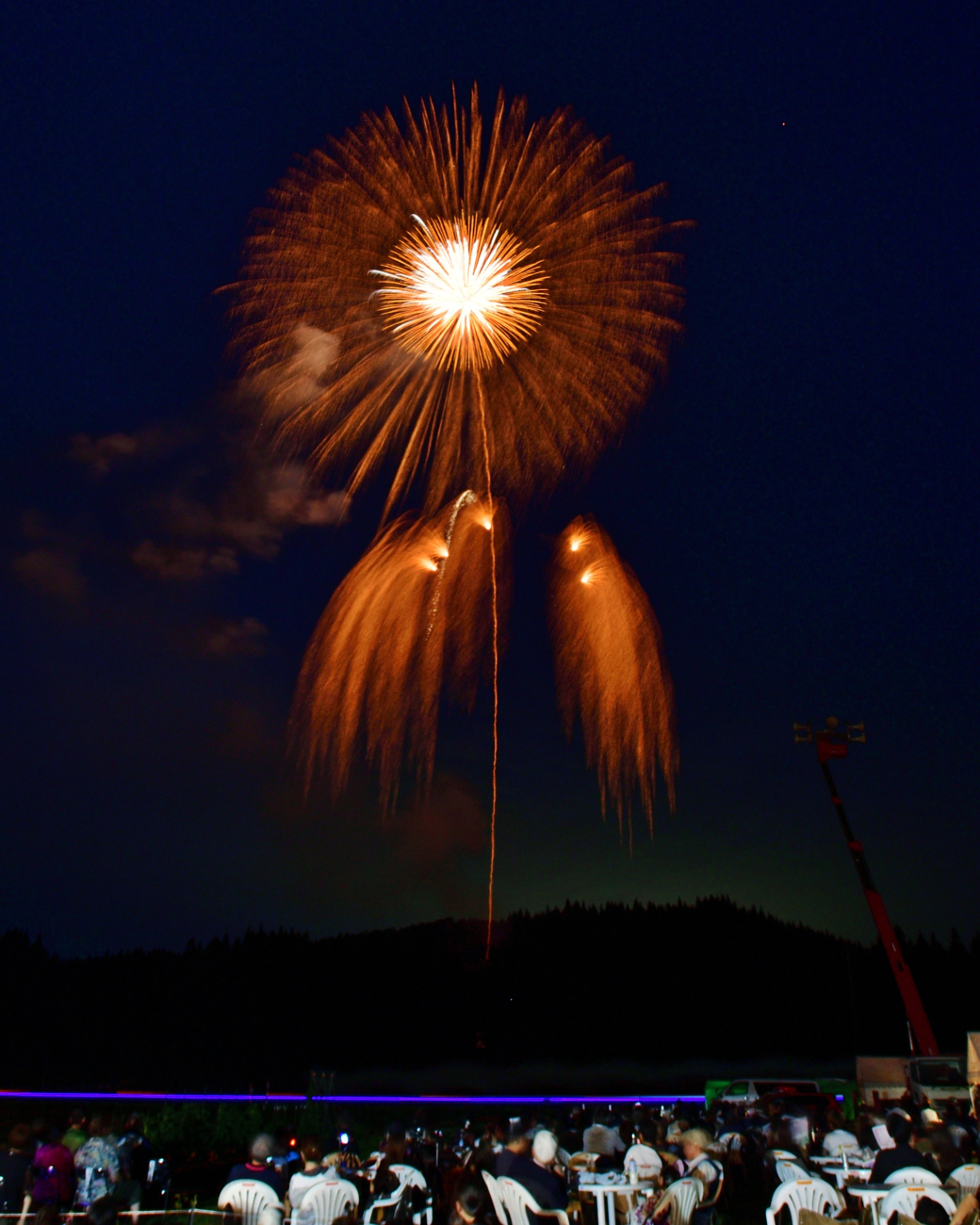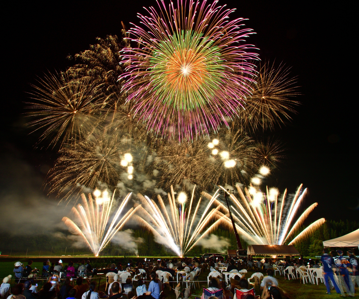 10数発の持ち寄りで始まった花火が、小さな町でも大きな事が出来るんだぞ!とみんなが頑張り続けて、唯一無二の大会に成長した協和七夕花火。有名花火大会のような雑踏は無く、穏やかな雰囲気の中、独創的な花火をじっくり楽しめる大会です!