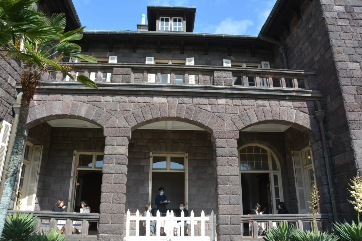 旧古河家の邸宅は、旧岩崎邸庭園洋館、鹿鳴館、ニコライ堂などを設計した英国人建築家のジョサイア・コンドルによってデザインされました。煉瓦造りの骨組みに、外壁は真鶴産の新小松石が野面積みされ、バランス感覚が溢れています。天然スレート葺き屋根もとても印象的です。
