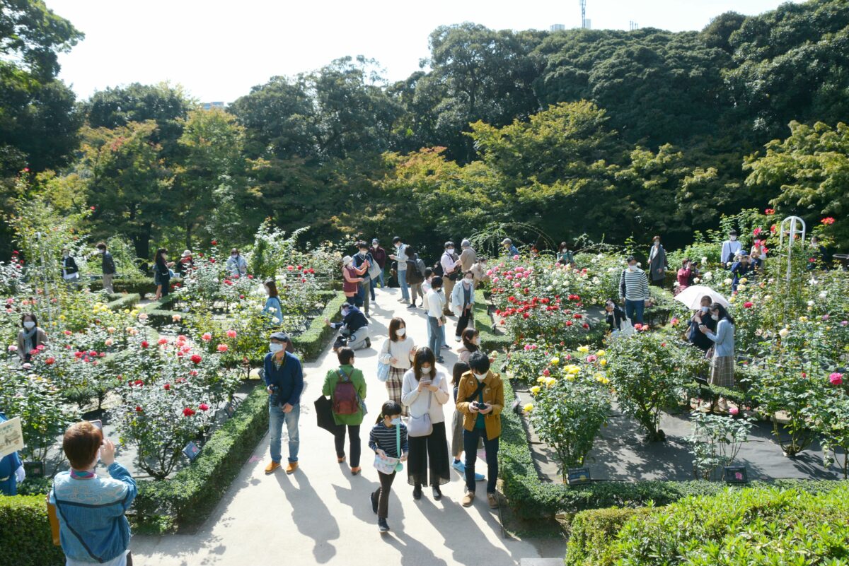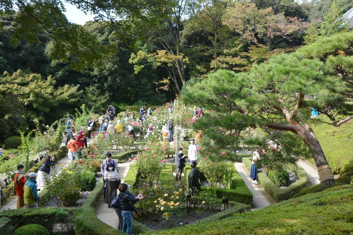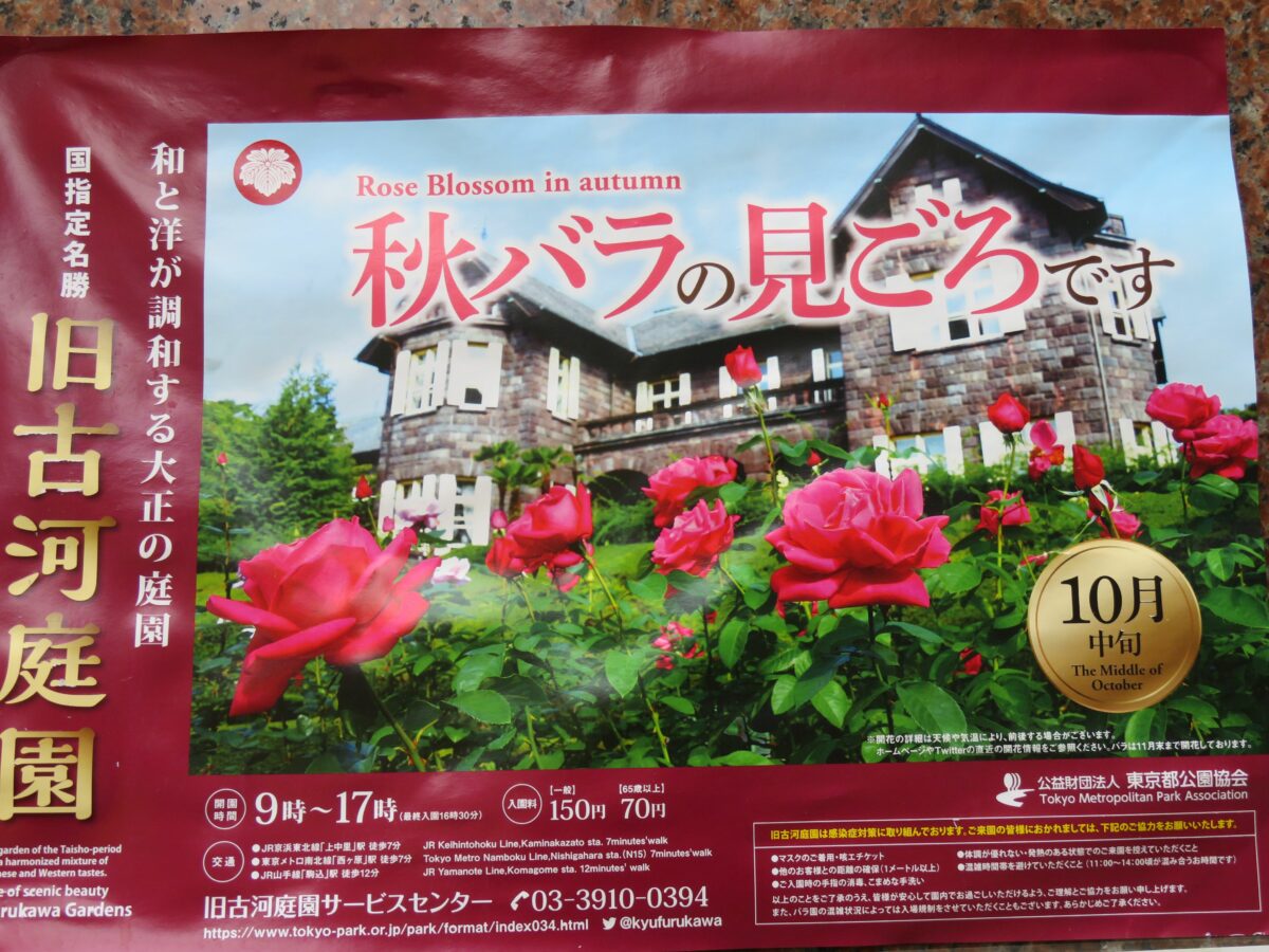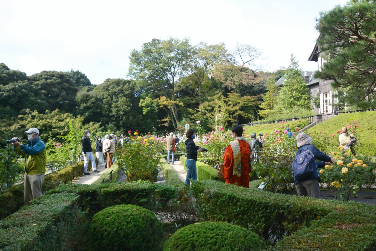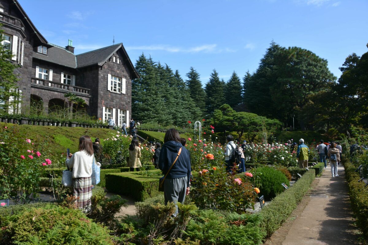 東京都北区の旧古河庭園の西洋庭園には約100種のバラが植栽され、例年10月上旬から下旬にかけて、秋バラが花を咲かせ洋館を季節の彩りで包み込みます。バラと洋館の壁石の色彩が見事なコントラストを見せてくれます。