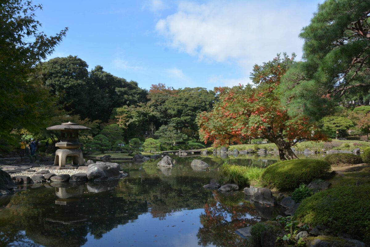 旧古河庭園には洋館や西洋庭園が設けられていますが、敷地の大半は日本庭園となっているのです。西洋庭園の南には広大な回遊式庭園となっています。バラの花の見頃時期に回遊式庭園を歩くと、深まりゆく秋を感じることができることでしょう。