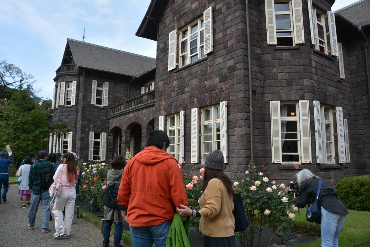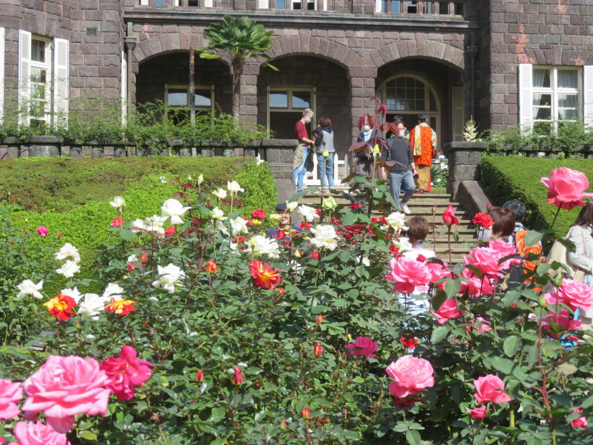 西洋庭園は洋館の南壁に接しています。バルコニーから西洋庭園の花を観賞することができるのです。色とりどりのバラを眺めながらティータイムを過ごせば、満ち足りた気分になるに違いありません。
