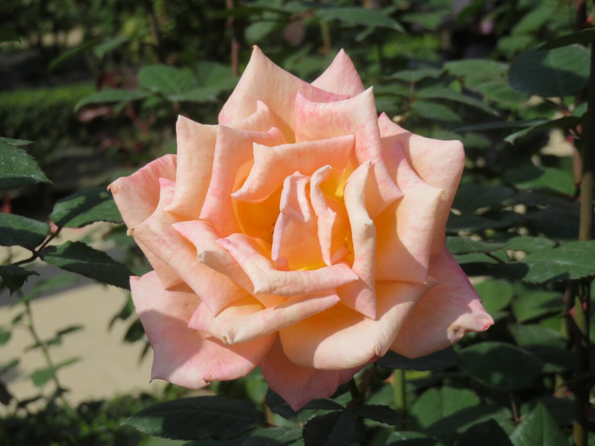 バラの花が色彩によるハーモニーを奏でる西洋庭園