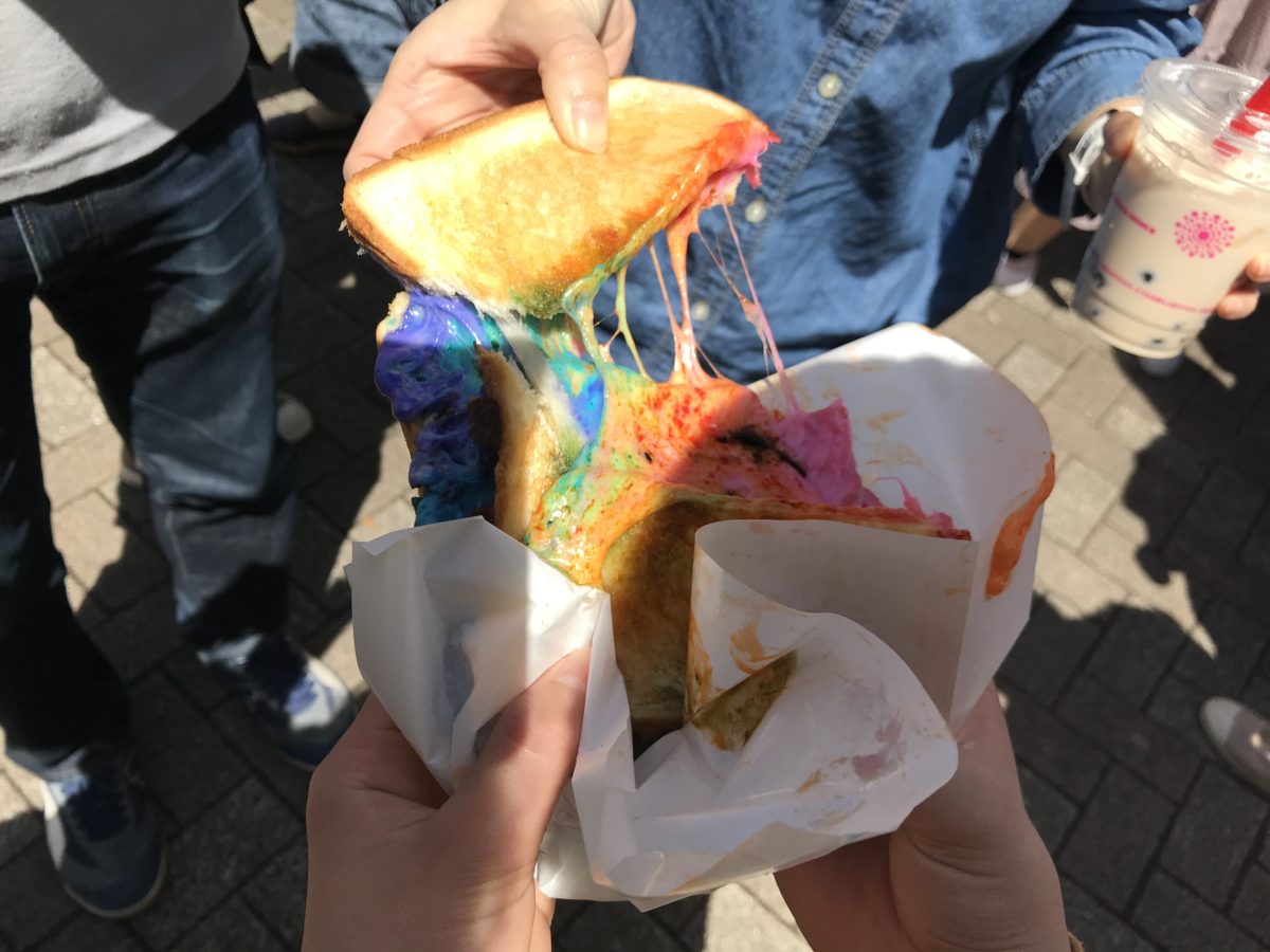 多様性を祝う祭典だけあって、参加者も食べ物も、国際色豊か!中でもレインボーカラーに彩られた食べ物はSNS映えするともあって、大人気です。