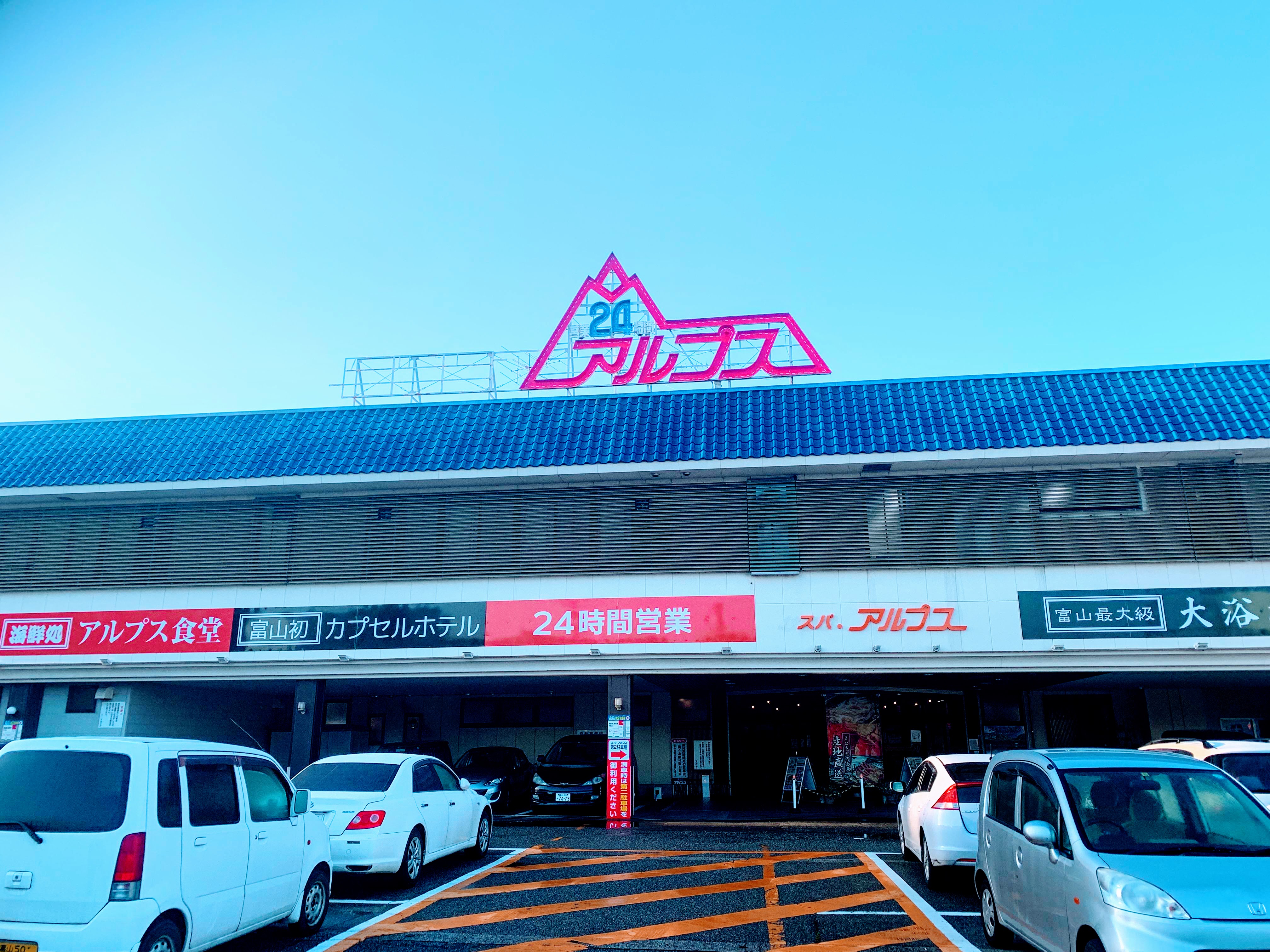 24時間空いていてサウナ愛好家たちの御用達のスパ・アルプス。アルプスの天然水を使用したお風呂と水風呂が自慢です。食事もできるので深夜バスで朝、早く着き過ぎたときなんかに重宝しますね。富山駅から車で10分、大泉駅から700メートルです。