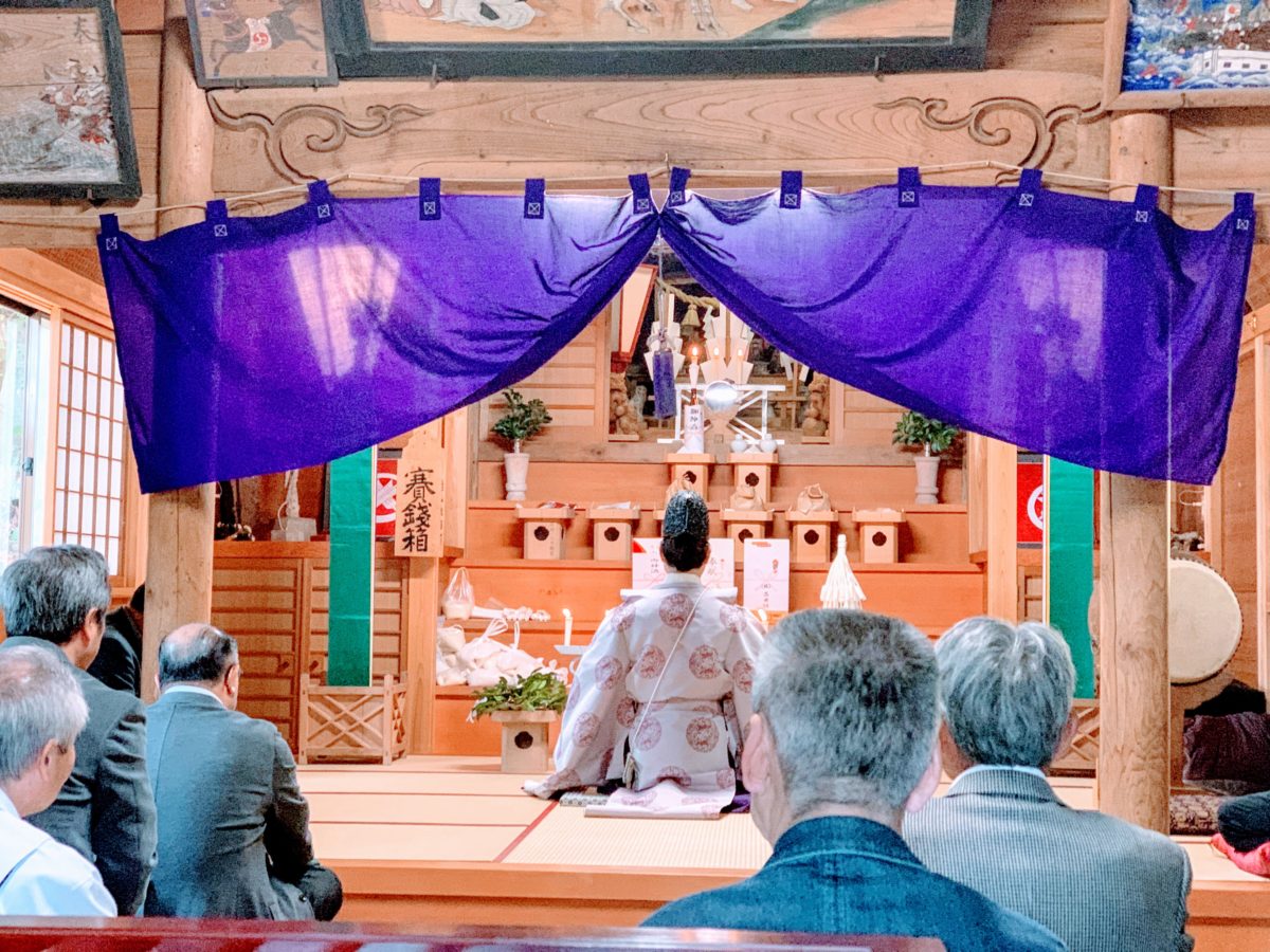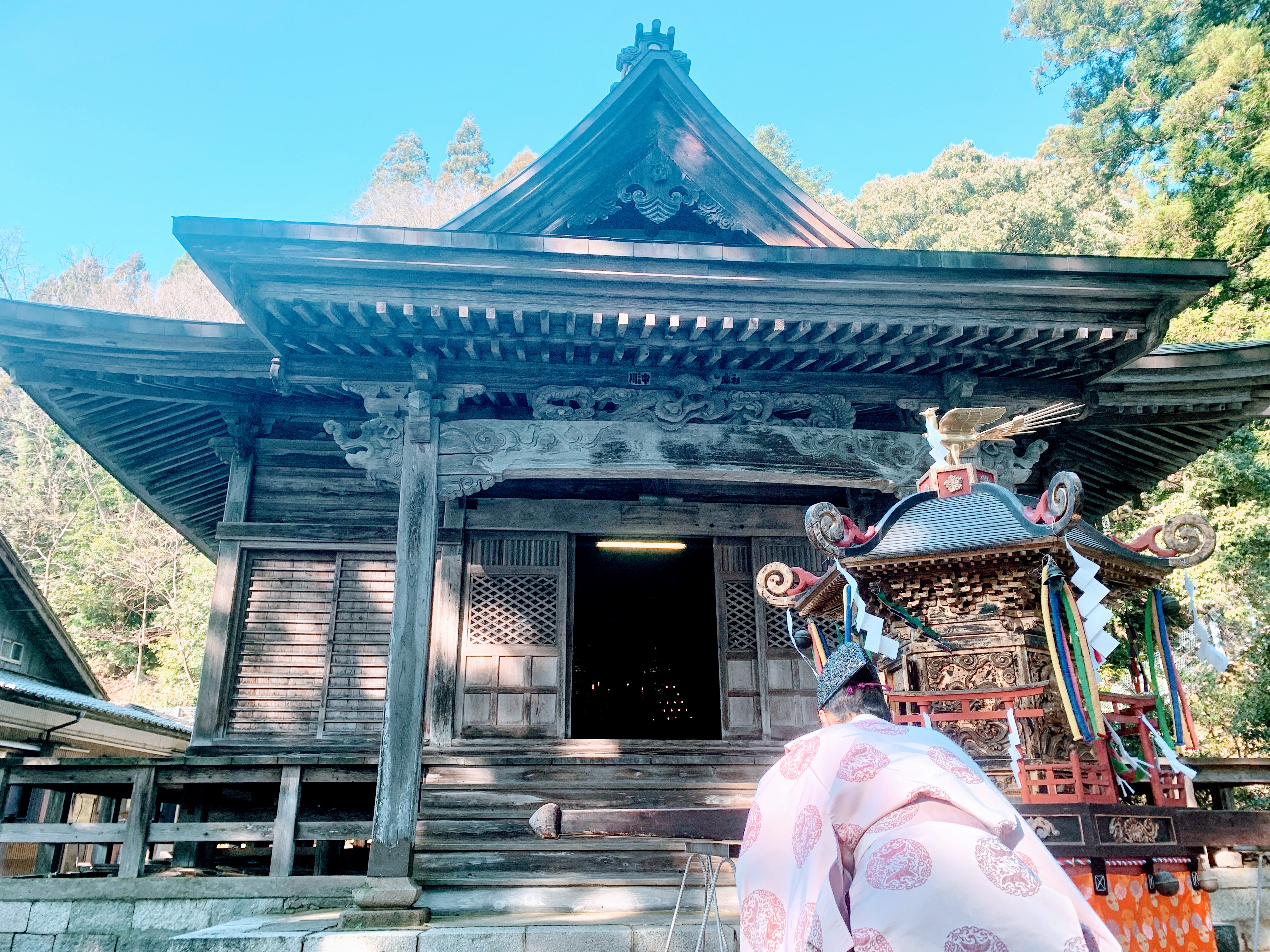 千光寺(観音堂)のすぐとなりの山には白山社という神社が併設。これから神事に入る前に、祈祷が行われました。そう。このお祭りは全国的にも珍しい神仏混淆(神仏習合)のお祭りなのです。