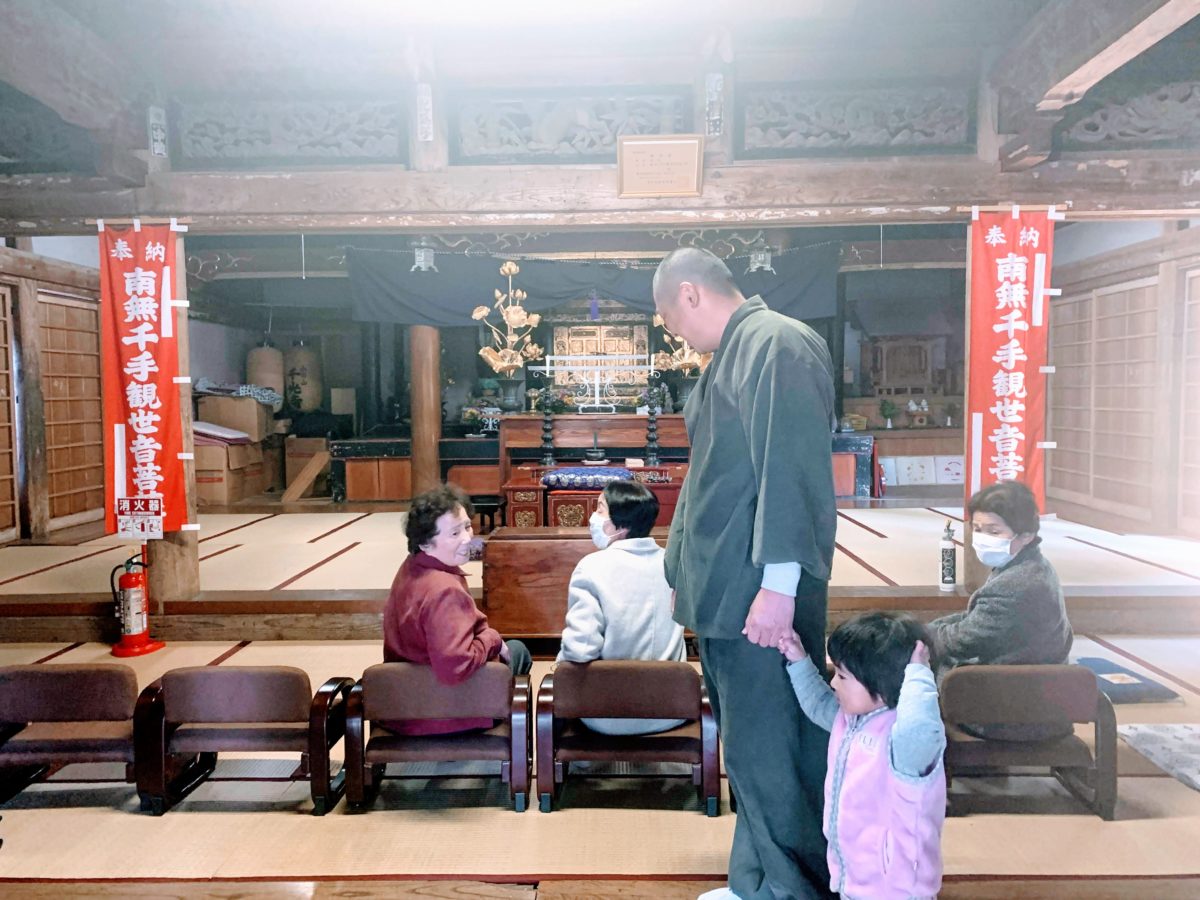 いきなり祭りの舞台へ直行ドーン。富山県魚津駅からバスで約30分、小川寺(小川山千光寺の観音堂)に着きました。この寺は1551年の上杉影虎の越中攻略の際に焼失し、その後再建されました。